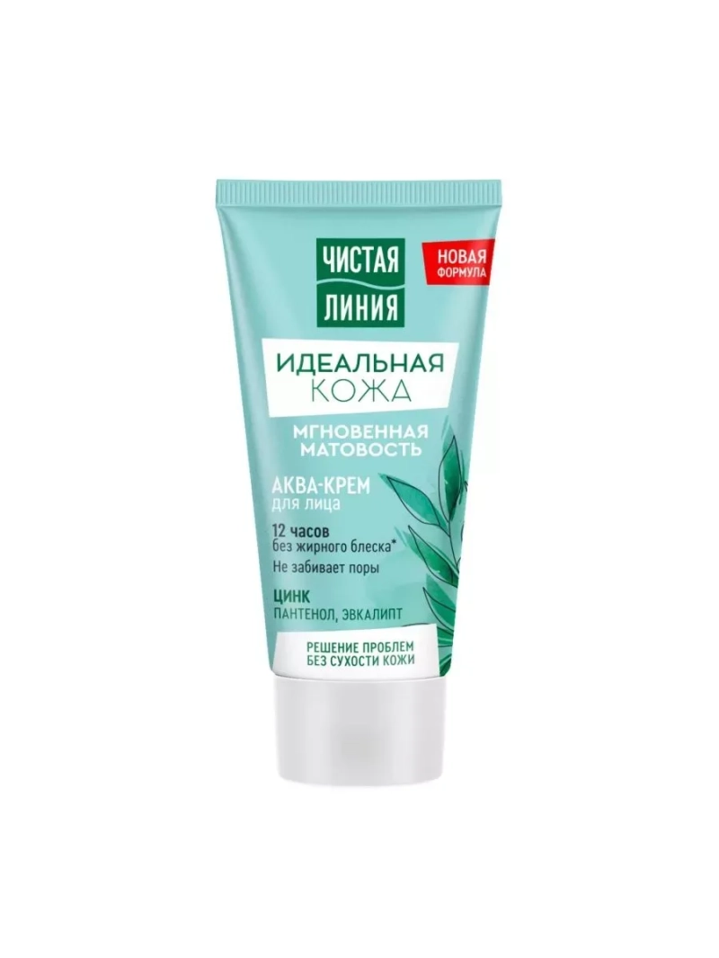 Наша кожа нуждается в тщательном уходе в любом возрасте. Молодая кожа часто требует эффективного, но бережного очищения от черных точек и прыщей, увлажнения без эффекта пленки и избавления от жирного блеска. Идеальная кожа – мечта каждой девушки! Поэтому специалисты бренда Чистая Линия создали серию средств Идеальная кожа для разных типов кожи, чтобы помочь девушкам достичь совершенства. Ваша кожа склонна к появлению жирного блеска? Скажи жирному блеску Bye-Bye с аква-кремом для лица Мгновенная матовость! Легкий увлажняющий аква-крем решит проблему жирного блеска. Особая Ультраэффективная формула крема содержит цинк и экстракт эвкалипта. Полезные свойства этих компонентов обеспечивают матовость коже на протяжении 12 часов и увлажнение на 24 часа, не закупоривая поры. В результате Ваша кожа становится идеально ровная, матовая и бархатистая на протяжении всего дня.