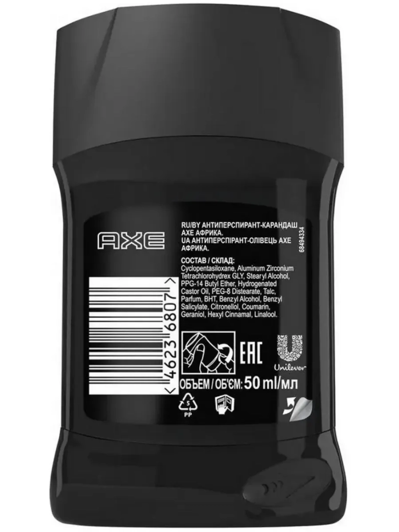 Добро пожаловать в будущее. Встречай инновацию от AXE, антиперспирант карандаш AXE Africa – твоя гарантированная защита от пота до 48 часов. Специальная формула с антибактериальным эффектом блокирует запах пота, а не просто маскирует его. Твой образ будет безупречным с антиперспирантом AXE Africa, ведь он не оставляет следов на одежде. Все ароматы AXE – шедевры, разработанные в сотрудничестве с лучшими парфюмерными домами. Мужской антиперспирант карандаш AXE Africa – это неповторимое сочетание благородного сандала и свежего мандарина. Крутой, бодрящий аромат, который пробуждает к жизни и наполняет энергией. AXE – самый популярный мужской бренд в мире, знаменитый своими эксклюзивными ароматами и удивительными рекламными кампаниями.