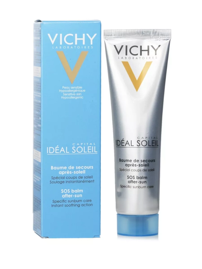 Бальзам после загара и солнечных ожогов Capital Soleil для восстановления кожи при солнечных ожогах от VICHY обеспечит вашей коже нежный уход и восстановление после активного пребывания на солнце. Бальзам быстро и эффективно охлаждает и успокаивает сухую кожу после воздействия солнечных лучей, возвращает чувство комфорта, придает коже гладкость и бархатистость. Крем от ожогов на солнце эффективно снимает негативные последствия интенсивного воздействия солнечных лучей. Активный регенерирующий комплекс нежного крема после загара мгновенно успокаивает и смягчает воспаленную кожу, обеспечивая ей необходимое увлажнение. Успокаивающий для всей семьи флюид способствует устранению сухости, шелушения и покраснения чувствительной кожи. Крем после загара не только помогает быстрее восстановить защитные функции повреждённой кожи после пребывания на солнце, не допустить появления пузырей на коже и уменьшить ощущение болезненности и жжения. Легкая текстура успокаивающего лосьона после загара обеспечивает равномерное покрытие, быстро впитывается и не оставляет белых следов. Безопасная формула солнцезащитного средства не вызывает раздражения, не закупоривает поры и может использоваться на жирной и проблемной коже. Не оставляет липкости и не стягивает кожу после впитывания, поэтому SOS-бальзам после ожогов подходит для сухой и возрастной кожи. Наносите толстым слоем на поврежденные участки кожи. Повторять процедуру нанесения каждые 2-3 часа после появления солнечного ожога. Избегайте контакта с глазами и слизистыми оболочками. Без отдушек и красителей. Гипоаллергенный санскрин подходит для чувствительной на светлой и смуглой коже. Увлажняющий крем пантенол подходит для всех типов кожи, в том числе для раздраженной. Протестировано под контролем офтальмологов и дерматологов. Подходит для мужчин, женщин, подростков и детей. Текстура крема после загара идеально подходит для использования в высокогорных районах, жарких климатических поясах, а также при длительном пребывании на солнце.