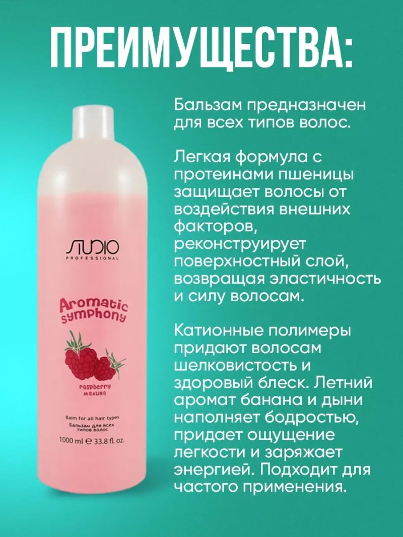 Бальзам для всех типов волос с ароматом малины – это незаменимый продукт для тех, кто хочет заботиться о своих волосах и поддерживать их здоровье и красоту каждый день. Этот кондиционер капос обладает уникальной формулой, которая не только глубоко увлажняет и питает волосы, но и облегчает их расчесывание, предотвращая повреждения и ломкость. Активные компоненты маски для сухих волос и поврежденыз волос проникают в структуру волоса, восстанавливая его изнутри и придавая естественный блеск. Легкая формула бальзама для жирных волос с протеинами пшеницы защищает волосы от воздействия внешних факторов, реконструирует поверхностный слой, возвращая эластичность и силу волосам. Катионные полимеры кондиционера для сухих волос придают волосам шелковистость и здоровый блеск. Яркий аромат малины улучшает настроение, дарит радость и легкость. Формула бальзама мягко распутывает волосы, уменьшая спутывание и ломкость, в то время как активные увлажняющие компоненты питают и восстанавливают волосы изнутри. Завораживающий блеск делает волосы более живыми и сияющими, даря вам уверенность в каждом взгляде на ваше отражение.