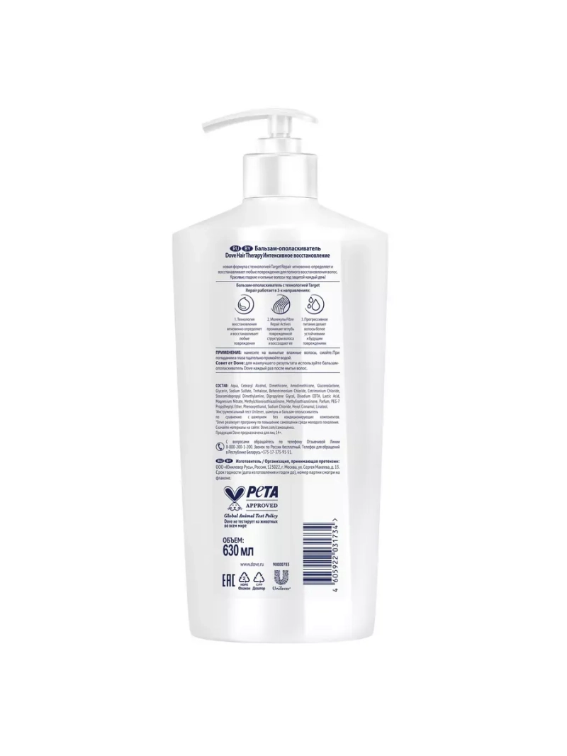 Для получения максимального результата, рекомендуется использовать всю серию средств для волос Dove Hair Therapy.
