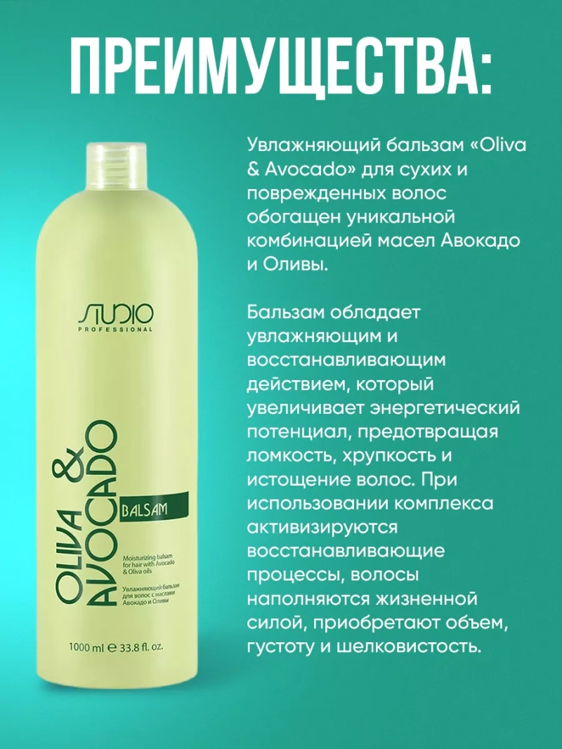 Увлажняющий бальзам "Oliva & Avocado" для сухих и поврежденных волос обогащен уникальной комбинацией масел Авокадо и Оливы. Бальзам обладает увлажняющим и восстанавливающим действием, который увеличивает энергетический потенциал, предотвращая ломкость, хрупкость и истощение волос. При использовании комплекса активизируются восстанавливающие процессы, волосы наполняются жизненной силой, приобретают объем, густоту и шелковистость. Способ применения: нанести бальзам на вымытые, отжатые волосы, уделяя особое внимание поврежденным участкам. Оставить воздействовать 3-5 минут. Смыть обильным количеством воды. После применения бальзама рекомендуется использовать сыворотку с маслами Авокадо и Оливы. Для глубокого восстановления и увлажнения волос используйте маску с маслами Авокадо и Оливы 1 раз в 7-10 дней. Состав: Aqua (Water), Cetearyl Alcohol, Cetrimonium Chloride, Dipalmytoylethyl Hydroxyethylmonium Methosulfate, Parfum (Fragrance), Methoxy PEG/PPG-7/3 Aminopropyl Dimethicone, Dipropylene Glycol, Triethylene Glycol, Benzyl Alcohol, Propylene Glycol, Sodium Hydroxide, Persea
