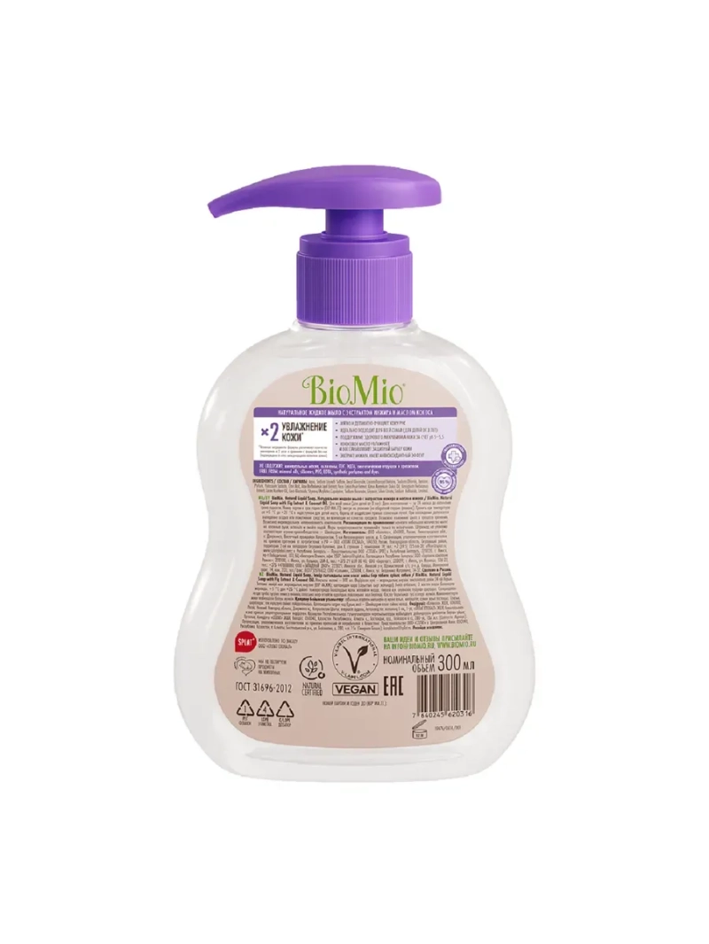 Испытайте дополнительные уходовые эффекты во время очищения кожи рук! Гипоаллергенное натуральное жидкое мыло Biomio инжир-кокос на 96% состоит из компонентов природного происхождения. Кокосовое масло увлажняет и восстанавливает защитный барьер кожи, а экстракт инжира имеет антиоксидантный эффект. Жидкое мыло для рук очищает и одновременно увлажняет кожу. Инновационный запатентованный комплекс из алоэ вера и бетаина увеличивает в клетках количество белков-аквапоринов, которые доставляют воду в эпидермис. Жидкое мыло мягко и деликатно очищает кожу рук. Подходит для всей семьи (для детей от 3 лет). Поддерживает здоровый микробиом кожи за счет рН 5-5,5.