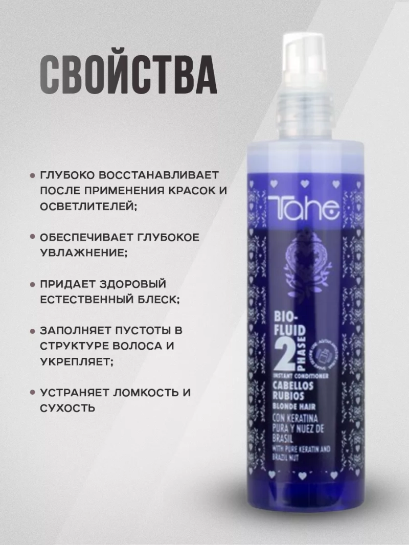 BIO FLUID мгновенного действия для блонда от профессионального бренда Tahe - это настоящий подарок для волос блондинок! Двухфазный кондиционер флюид разработан специально для того, чтобы подчеркнуть красоту и яркость блондированных волос.