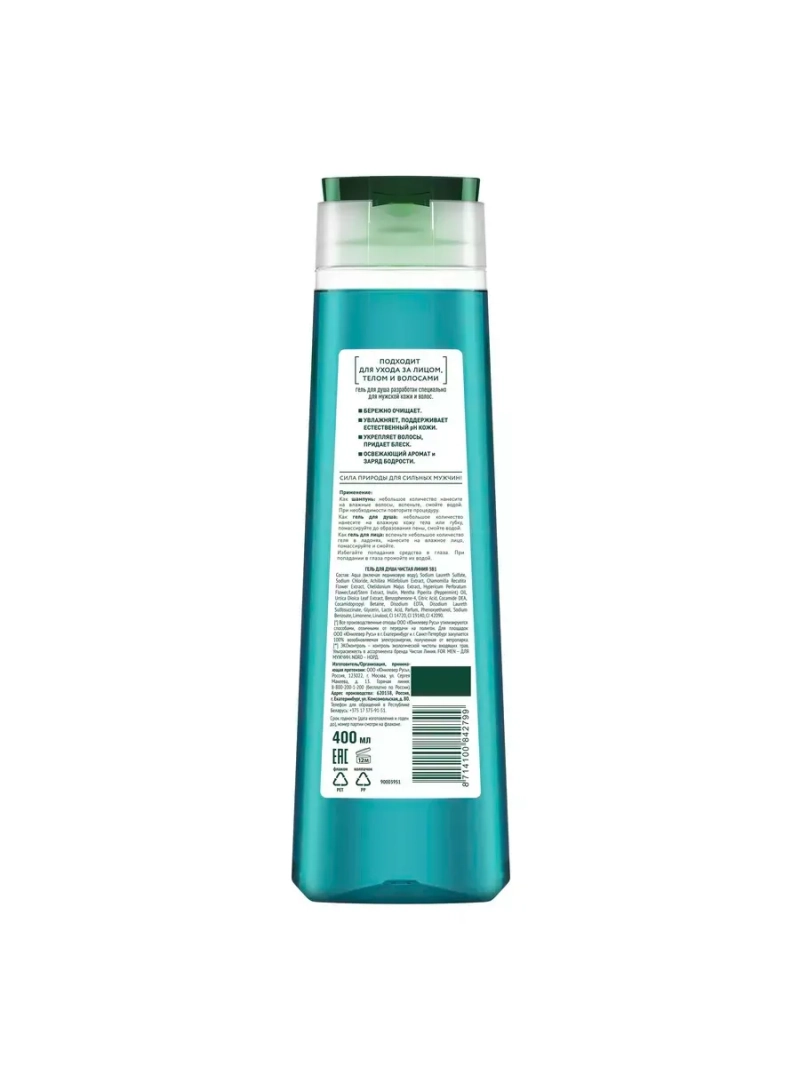 Травы в составе продуктов ЧИСТАЯ ЛИНИЯ имеют паспорт качества и проходят многоступенчатый контроль экологической чистоты. ЧИСТАЯ ЛИНИЯ гарантирует эффективность: следит за соблюдением уровня активных веществ, использует только самые эффективные части растений, занимается клиническими исследованиями отвара трав. Новая линейка FOR MEN предназначена специально для мужчин. Шампунь – гель для душа 3 в 1 от бренда ЧИСТАЯ ЛИНИЯ это 100% ухода. Уникальная формула шампуня – геля для душа 3 в 1 состоит на 80% из отвара трав. Активные натуральные компоненты средства укрепляют волосы от корней до кончиков, а освежающий аромат придает заряд бодрости . Дикая мята в составе обеспечивает гладкое и глубокое очищение по-мужски, ледниковая вода ухаживает за кожей головы и тела. Мужской шампунь – гель для душа 3 в 1 придает ощущение свежести надолго! Гель для душа разработан специально для мужской кожи и волос . Подходит для ухода за лицом, телом и волосами