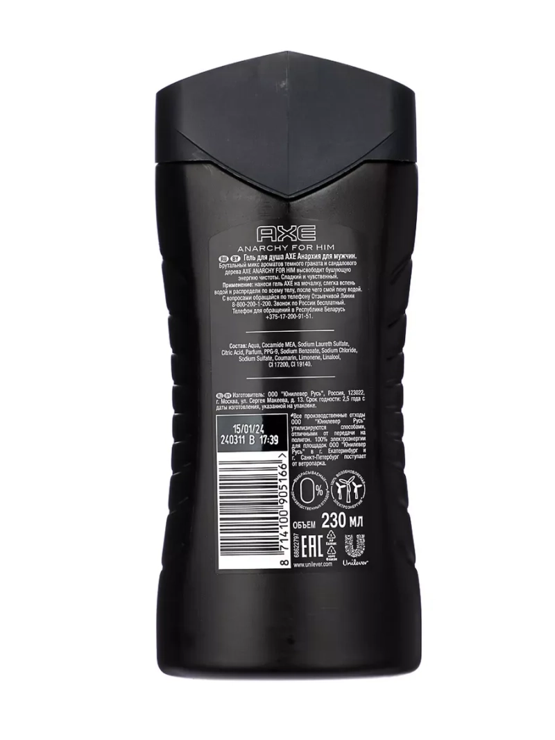 Манящий аромат беспредела уже здесь! Прочувствуй цитрусово-пудровый аромат с дерзким мандарином и чувственным мускусом. Эффективно и без лишних усилий очищает кожу, дезодорирует ее и обеспечивает антибактериальную защиту. Дай волю своей страсти с AXE ANARCHY!
