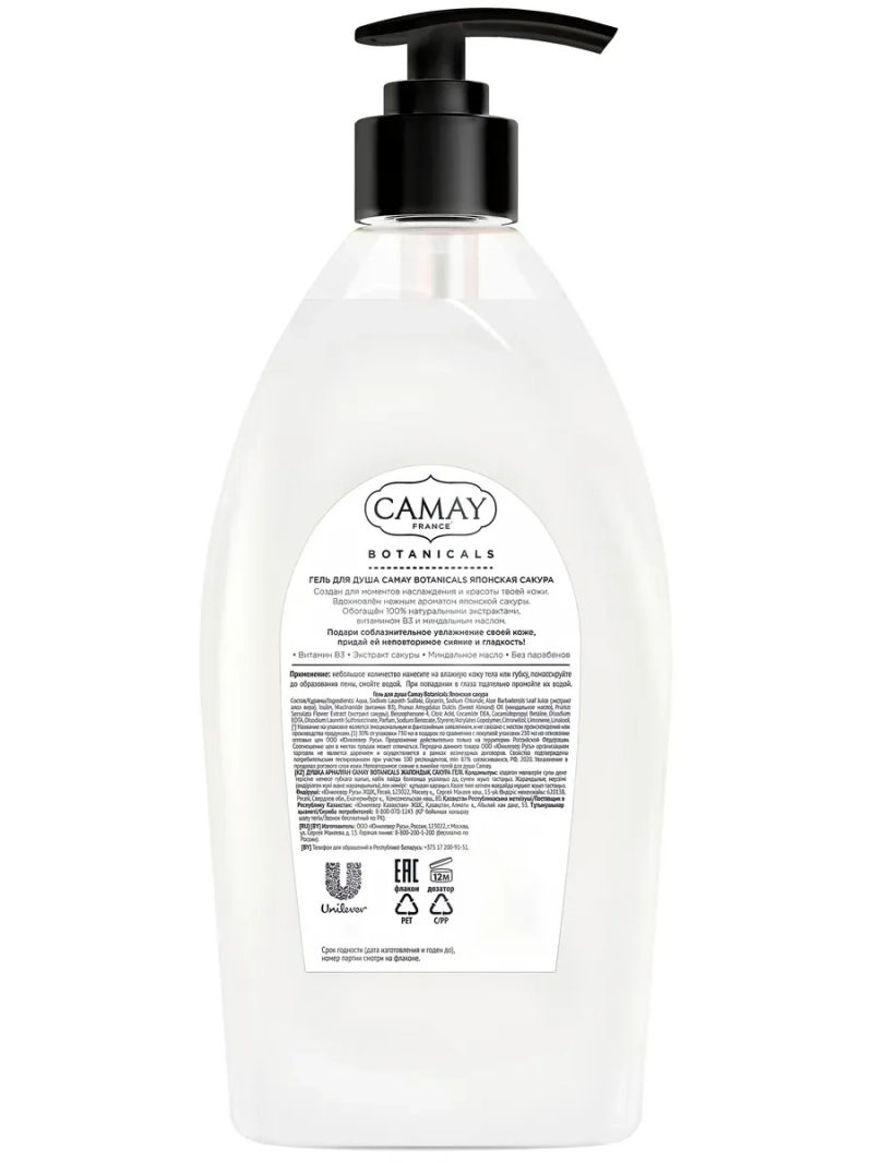 Полное наименование: CAMAY Гель для душа BOTANICALS Японская сакура 750 мл. Производитель: Unilever Россия. Попробуйте гель для душа Camay Botanicals Японская сакура! Он создан для моментов наслаждения и красоты вашей кожи. Вдохновлён невероятно нежным ароматом японской сакуры. Содержит 100% натуральные экстракты, витамины В3 и миндальное масло. Идеален для соблазнительного увлажнения кожи, неповторимого сияния и гладкости!