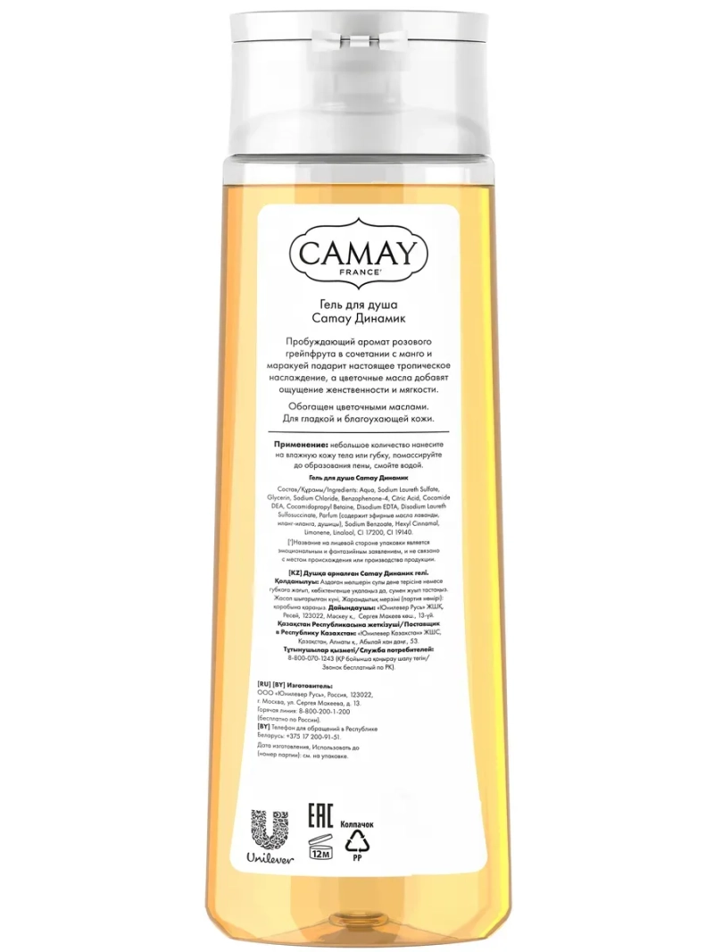 Энергия жизни CAMAY Динамик Пробуждающий аромат розового грейпфрута геля для душа Camay Динамик дарит бодрящий цитрусовый заряд и свежесть, а цветочные нотки добавляют ощущение женственности и мягкости. Верхние ноты этого аромата насыщены бодростью спелого розового грейпфрута, тогда как в середине нежные цветы ландыша придают ему искренней женственности, оставляя ощущение умиротворения и спокойствия аромата мускуса в базовых нотах. Благодаря насыщенной гелеобразной текстуре гель для душа с легкостью превращается в нежную пену, полностью смывается водой, позволяя коже дышать. А формула помогает сохранить естественную увлажненность кожи и предотвращает возникновение чувства сухости и стянутости после использования. Освежающий аромат розового грейпфрута пробуждает эмоции. Побалуйте себя гелем для душа Camay Dynamique с ароматом розового грейпфрута, наполняющим энергией на весь день!