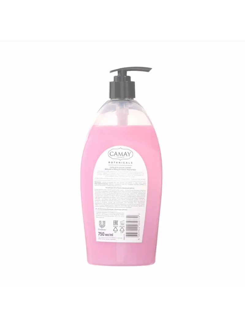 Полное наименование: CAMAY Гель для душа Вишня и миндальное молочко 750мл. Производитель: Unilever Россия. Попробуйте гель для душа Camay Вишня и миндальное молочко и ощутите чувственный аромат спелой вишни с легкой свежей кислинкой. Насыщенный гурманский аромат не оставит вас равнодушной. Миндальное молочко увлажняет и успокаивает кожу, возвращает ей тонус. Сразу после душа кожа выглядит ухоженной и увлажненной. Содержит 100% натуральные масла. Botanicals - Ботаникалс.