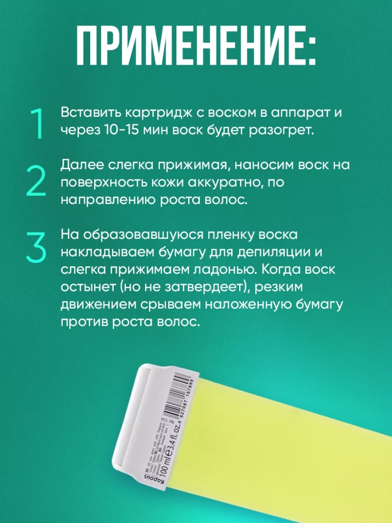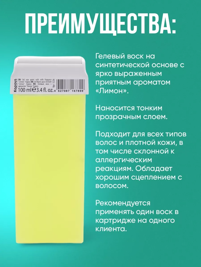 Гелевый воск с ароматом Лимон - это незаменимый продукт для любителей депиляции и ухода за кожей. Созданный на основе синтетических компонентов, он обладает ярко выраженным приятным ароматом и великолепным нанесением. Богатый состав включает экстракты, которые помогают ухаживать за вашей кожей. В то время как тонкий, прозрачный слой воска позволяет достичь безупречных результатов. Этот гелевый воск идеален для использования на всех типах волос и даже на плотной коже, склонной к аллергическим реакциям. Так что вы можете быть уверены, что ваша кожа будет выглядеть гладкой и здоровой.Один картридж воска предназначен для одного клиента. Это удобное решение позволяет сохранить гигиену и защитить каждого вашего клиента от возможной контаминации. Таким образом, вы сможете обеспечить профессиональное качество и безопасность ваших услуг. Все эти компоненты специально подобраны для достижения отличного сцепления с волосами и максимального комфорта во время депиляции.Применение воска также очень просто. Просто вставьте картридж с воском в аппарат и через 10-15 минут он будет готов к использованию. Затем аккуратно нанесите воск на поверхность кожи по направлению роста волос и прилегающую область. Наложите бумагу для депиляции на воск, слегка прижмите ладонью. Когда воск остынет, но не затвердеет, резким движением удалите бумагу в направлении против роста волос. Таким образом, вы достигнете максимальных результатов и получите нежную, гладкую кожу.Гелевый воск с ароматом Лимон - отличный выбор для депиляции и ухода за кожей. Его высокое качество и простота использования делают его идеальным продуктом для салонов красоты и домашнего использования. Попробуйте его сегодня и наслаждайтесь превосходными результатами, которые он обеспечивает.Все продукты, представленные на нашем маркетплейсе, проходят строгий контроль качества, поэтому вы можете быть уверены в их надежности и эффективности. Закажите гелевый воск с ароматом Лимон прямо сейчас и наслаждайтесь гладкой и ухоженной кожей!