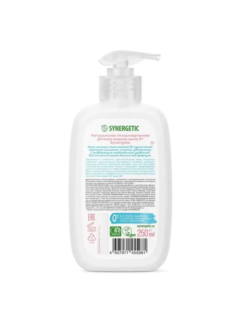 Комплектация SYNERGETIC/Синергетик Жидкое мыло детское натуральное гипоаллергенное 0+, 250 мл