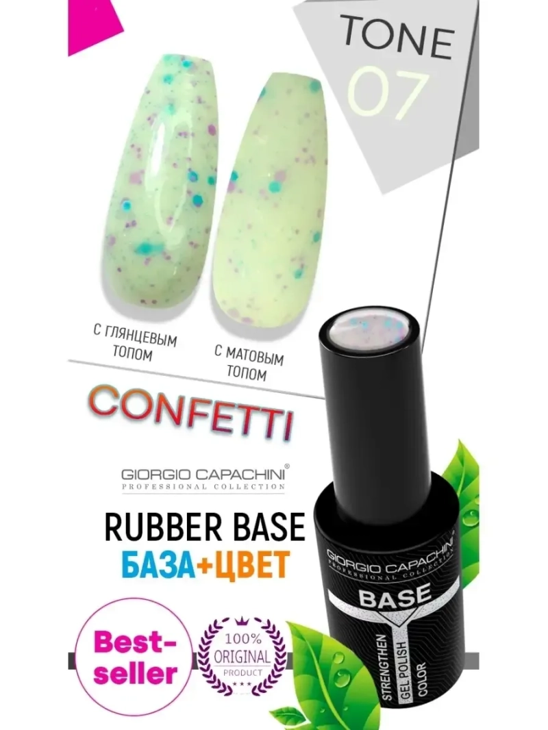 Базовое покрытие для гель-лака от GIORGIO CAPACHINI коллекция КОНФЕТИ т.7. В подарок идет пилочка для ногтей 180/180! Цветная камуфлирующая база для маникюра Potal Base тон 7 средней густоты с разноцветной поталью.Камуфляжная база для ногтей отличается плотностью и средней вязкостью, что обеспечивает удобство в работе. Камуфлирующая основа позволяет наносить ее тонким полупрозрачным слоем для легкого оттеночного эффекта, а также выравнивающим слоем для создания плотного и красивого тона. База для ногтей является универсальным средством, которое совместимо с любыми гель-лаками. Кроме того, она может быть использована как основа для двухфазной системы база-топ. База для ногтей с блестками подходит как для мягкой, так и для жесткой ногтевой пластины. Камуфлирующая база для ногтей идеально подходит как самостоятельное покрытие для френч-дизайна, а также как самовыравнивающая и маскирующая недостатки ногтей база. Покладиста в нанесении и полимеризации, экономична в расходе. Выравнивает ногтевую пластину, придает натуральный оттенок, обеспечивает стойкость маникюра без сколов и отслоек до 4 недель. Благодаря густой эластичной текстуре камуфляжная база, легко наносится, не полосит, не растекается и позволяет добиться идеального маникюра, самовыравнивающаяся. Гипоаллергенная и безопасная для Ваших ногтей. Широкая палитра оттенков молочная, нюдовая, френч, нюд. Технология нанесения:1. Подготовьте ногтевую пластину к покрытию гель-лаком (продезинфицируйте, обезжирьте,снимите глянец мягким бафом нанесите праймер, высушите на воздухе). 2. Нанесите подложку в виде прозрачной базы для ногтей. Просушите 2 мин в УФ лампе, или 30-60 сек в LED-лампе 3. Нанесите цветную базу. Полимеризуйте 2 мин в УФ лампе или 30-60 секунд в LED. Повторите процедуру. 4. Зафиксируйте матовым или глянцевым топом для гель лака. Просушите.