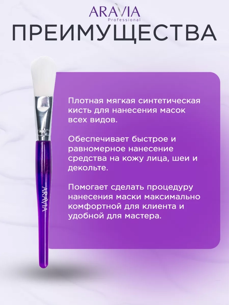 КИСТЬ КОСМЕТОЛОГИЧЕСКАЯ ДЛЯ НАНЕСЕНИЯ МАСОК. Плотная мягкая синтетическая кисть для нанесения масок всех видов. Обеспечивает быстрое и равномерное нанесение средства на кожу лица, шеи и декольте. Помогает сделать процедуру нанесения маски максимально комфортной для клиента и удобной для мастера. Назначение: кисть косметологическая для нанесения масок. Размер: 16,5 см