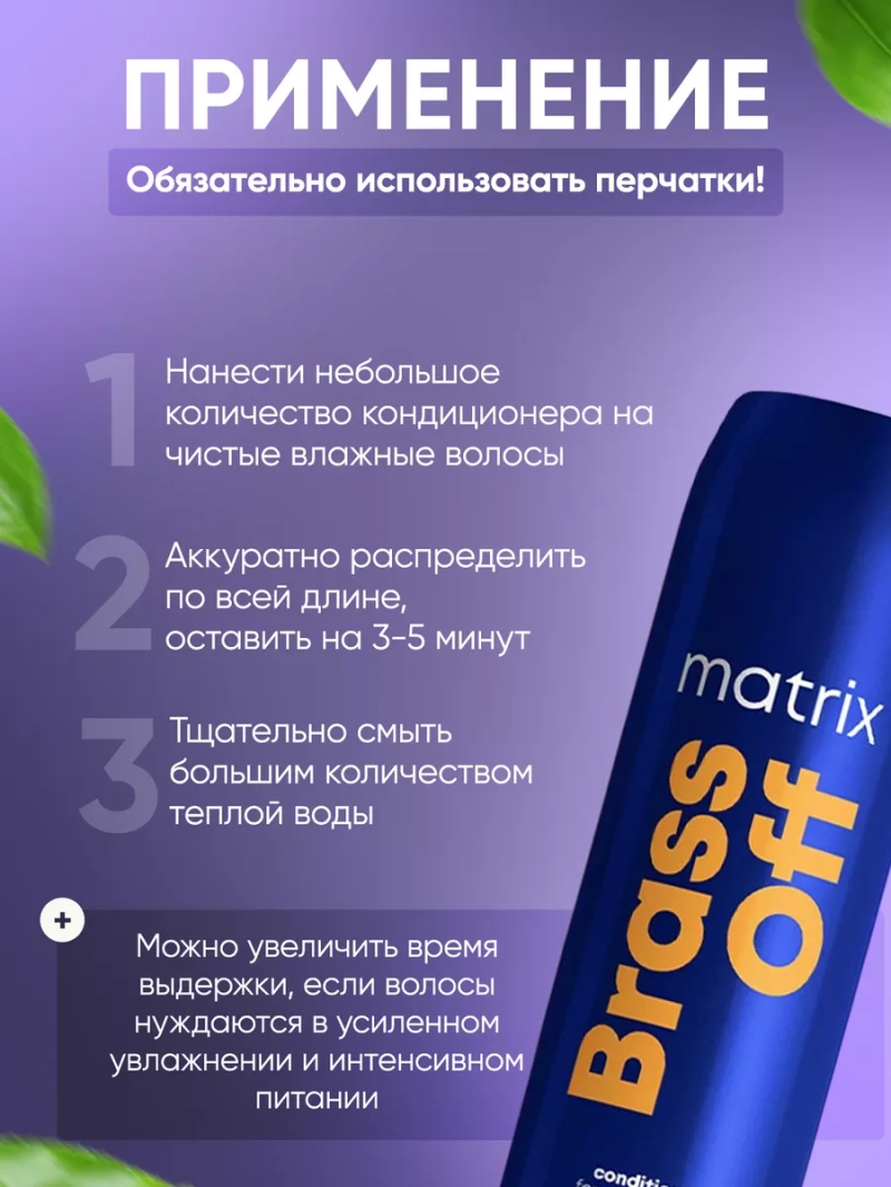 Все, кто хоть раз решался на процедуру осветления или мелирования волос в светлые тона, знают, как сложно добиться сияющего, холодного, жемчужного оттенка без желтизны и теплоты. Линия L’oreal Matrix Total Results Color Obsessed Brass Off (Лореаль Матрикс Колор Обсэст Брас Оф) создана специально для осветленных брюнеток, шатенок и обладателей темных волос, чтобы нейтрализовать желтизну и сохранить холодный оттенок блонда. Кондиционер Color Obsessed Brass Off дополняет и усиливает действие шампуня для холодного блонда, но может использоваться и как отдельный продукт ухода за всеми типами и текстурами волос. Уникальная формула содержит особый набор компонентов, оптимальный для поврежденных, пористых волос. Запатентованные инновационные составы с активным увлажняющим и восстанавливающим действием включаются в работу с момента соприкосновения с волосами. 100 % веганский бренд включает в составы своих средств только экологически чистые. Мощный комплекс витаминов заполняет и выравнивает поврежденные участки, ухаживающие и кондиционирующие компоненты делают волосы менее жесткими, восстанавливают, укрепляют и разглаживают структуру. Добавляется блеск и сияние за счет сглаживания поверхности полотна волос, восполняется потеря влаги после использования шампуней с агрессивными ПАВами. Кондиционер заботится о кончиках, предотвращает их обламывание и дальнейшее сечение. Бальзам – кондиционер имеет эффект ламинирования. Волосы легкие, не перенапитанные и разглаженные. Имеет антистатический эффект, помогает снизить пушистость и электризацию. Регулярное использование бальзама поможет минимизировать использование дополнительных средств по уходу за волосами, силиконовых спреев – несмывашек и масел для разглаживания. Имеет бледный лавандовый цвет. Не окрашивает ванну, руки и лицо.Не является тонирующим или окрашивающим, но бальзам можно использовать для нейтрализации оранжевых и медных оттенков на темных осветленных волосах при смешивании с маской Color Obsessed Brass Off.