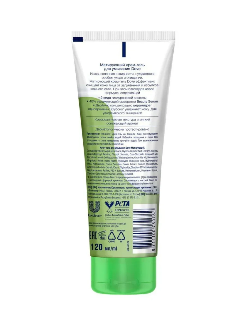 Идеально гладкая, нежная и ухоженная кожа – неизменное олицетворение красоты в Азии уже более тысячи лет. Правильный уход за кожей – это главное оружие японских женщин. Именно поэтому азиатские ритуалы ухода – это мировой тренд, не теряющий свою актуальность и растущий из года в год. Специально для вас Dove, совместно с японскими специалистами, разработал линейку средств для ежедневного ухода за кожей, призванную бережно очищать кожу лица и заботиться о ней. Одно из таких средств - Матирующий крем-гель для умывания Dove. Матирующий крем-гель для умывания Dove предназначен для очищения кожи лица. Имеет кремовую нежную текстуру и мягкий натуральный цветочный аромат. Продукт подходит для комбинированной и склонной к жирности кожи. Матирующий крем-гель для умывания Dove содержит экстракт гамамелиса вирджинского для нежного удаления загрязнений и избытка кожного сала из пор. Продукт эффективно очищает и одновременно глубоко* увлажняет кожу, благодаря формуле с концентрированной сывороткой NutriumMoisture Beauty Serum. Кроме того, состав Матирующего крем-геля для умывания Dove обогащен церамидами, которые восстанавливают и поддерживают липидный барьер кожи. Просто нанесите крем-гель на влажное лицо, помассируйте лицо легкими круговыми движениями, а затем смойте средство прохладной водой. Результат – чистые поры и кожа лица без ощущения липкости после каждого умывания! Dove не тестируется на животных во всем мире. *в пределах эпидермиса