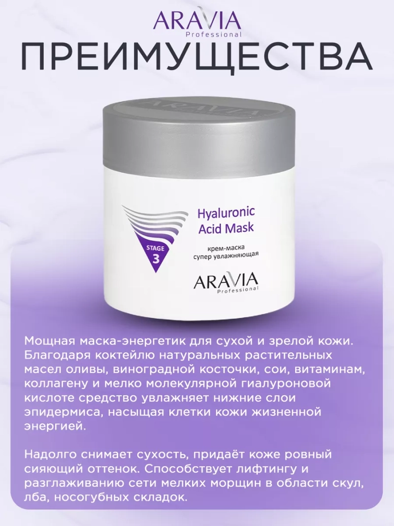 Мощная маска-энергетик для сухой и зрелой кожи. Благодаря коктейлю натуральных растительных масел оливы, виноградной косточки, сои, витаминам, коллагену и мелко молекулярной гиалуроновой кислоте средство увлажняет нижние слои эпидермиса, насыщая клетки кожи жизненной энергией. Надолго снимает сухость, придаёт коже ровный сияющий оттенок. Способствует лифтингу и разглаживанию сети мелких морщин в области скул, лба, носогубных складок. Восстанавливает защитный липидный барьер кожи, насыщает её ненасыщенными жирными кислотами и церамидамиНазначение: уход за сухой, обезвоженной кожей. Коррекция сети мелких морщинСпособ применения: нанести плотным слоем на подготовленную кожу. Оставить для воздействия на 15-20 минут. Остатки маски промокнуть сухой салфеткойСостав: Aqua, Pantenol, Betaine, Sodium Hyaluronate, Hydrolyzed Collagen, Olea Europaea (olive) Fruit Oil, Glycine Soja (Soybean) Oil, Isopropyl Myristate, Emulsifying Wax, Glycerin, Vitus Vinifera (Grape) Seed Oil, Glyceryl Stearate, Sodium Polyacrylate, Tocopherol, ВНТ, Parfum, Benzyl Alcohol, Methylchloroisothiazoline, MethylisothiazolineПримечание: для сухой и зрелой кожи
