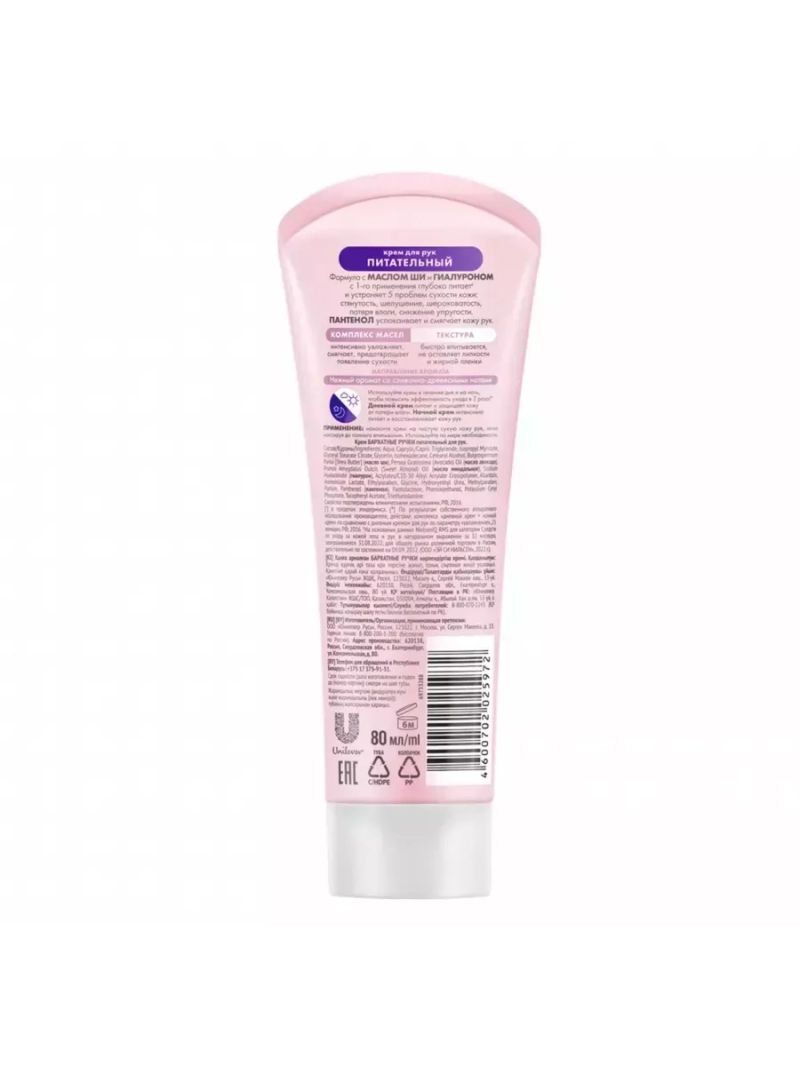 Бренд Бархатные Ручки представляет крем для рук ПИТАТЕЛЬНЫЙ. Насыщенный крем с гиалуроном устраняет 5 проблем сухости кожи и делает ее заметно мягче и нежнее. Интенсивно разглаживая кожу, придает рукам ухоженный вид. Формула Silk Oil Elixir усилена гиалуроном для глубокого питания кожи после контакта с водой. Кожа ваших рук нежная для ласковых прикосновений и бесценных моментов. Микромасла восстанавливают клетки кожи и в комплексе с протеинами шелка делают ее мягкой и нежной.Использование дневного и ночного крема повышает эффективность ухода в 2 раза!
