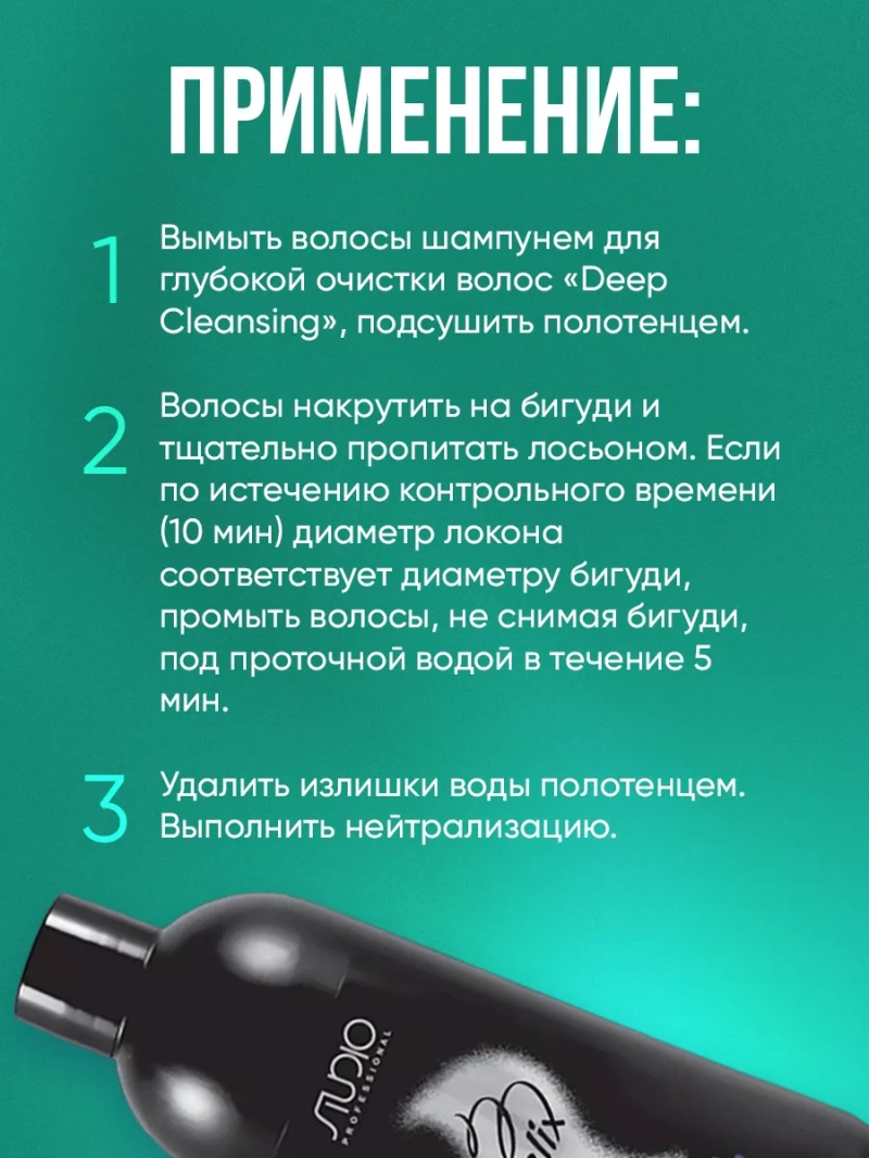 Лосьон для перманентной завивки трудно поддающихся, жестких волос. Протеины пшеницы, увлажняющие добавки и полимеры защищают волосы и гарантируют эластичные локоны на долгое время. Предназначен для различных техник выполнения перманентной завивки. Готов к применению. Лосьон для перманентной завивки трудно поддающихся, жестких волос. Протеины пшеницы, увлажняющие добавки и полимеры защищают волосы и гарантируют эластичные локоны на долгое время. Предназначен для различных техник выполнения перманентной завивки. Готов к применению. Активные ингредиенты: ПротеиныИз белков, или протеинов, состоят все живые организмы на нашей планете. Организмы состоят из трех видов белков: животных, растительных и морских. Все три вида используются в косметике. пшеницы. Способ применения: Только для профессионального применения. Вымыть волосы шампунем для глубокой очистки волос Deep Cleansing , подсушить полотенцем. Волосы накрутить на бигуди и тщательно пропитать лосьоном. Если по истечению контрольного времени (10 минут) диаметр локона соответствует диаметру бигуди, промыть волосы, не снимая бигуди, под проточной водой в течение 5 минут. Удалить излишки воды полотенцем. Выполнить нейтрализацию. Меры предосторожности: содержит соли тиогликолия. Использовать в хорошо проветриваемом помещении. Работать в перчатках, только с пластмассовыми аксессуарами. Избегать контакта с глазами. При попадании в глаза немедленно промыть обильным количеством воды. Хранить в сухом месте, недоступном для детей. При первичном применении необходимо произвести тест на чувствительность! На чистую кожу за ухом или на изгибе локтя нанести лосьон и оставить на 1-2 часа. Если появились зуд или опухание, использование лосьонов не рекомендуется!