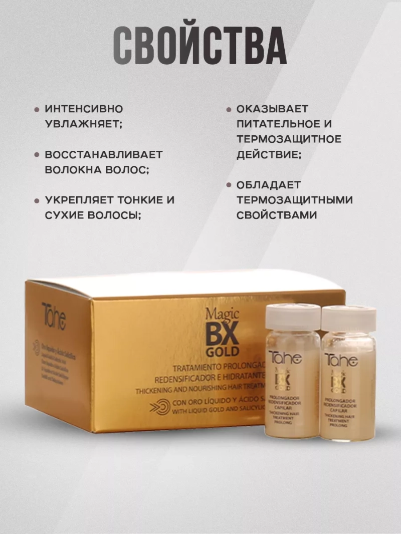 Magic BX Gold Thickening Hair Treatment Prolong от бренда Tahe - это не просто сыворотка для ухода за волосами, это настоящая магия, которая преобразит вашу прическу и подарит вам уверенность в своей красоте. Попробуйте натуральную сыворотку для сухих прямо сейчас и убедитесь сами в его эффективности!