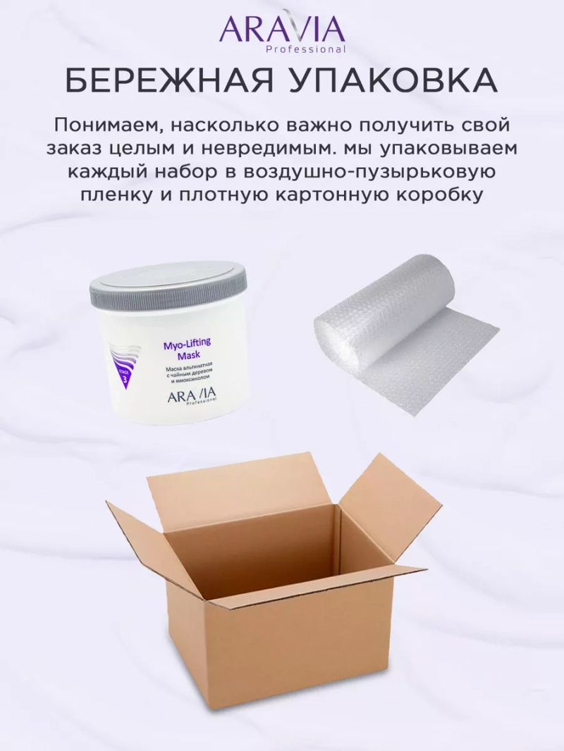 МАСКА АЛЬГИНАТНАЯ С ЧАЙНЫМ ДЕРЕВОМ И МИОКСИНОЛОМ MYO-LIFTING, 550 МЛ. Альгинатная маска с себостатическим, успокаивающим действием. Олигопептид миоксинол борется с мимическими морщинами и обладает антиоксидантным потенциалом. Предотвращает провисание кожи нижней трети лица, обладает моделирующим действием. Комплекс на основе эфирного масла чайного дерева, ментола и морских водорослей оказывает охлаждающее, успокаивающее и местное антибактериальное действие, одновременно увлажняя кожу и препятствуя появлению чувства стягивания и шелушения. Экстракт хвоща снимает покраснения после чистки лица, выравнивает тон кожи. Рекомендуется для жирной кожи всех возрастов. Назначение: профессиональная маска для лица и шеи, применяется для сухой и возрастной кожи на завершающем этапе интенсивного ухода, после чистки, массажа, и в качестве самостоятельной процедуры. Рекомендации для использования: завершающий этап интенсивного ухода или самостоятельная процедура. ДЕЙСТВИЕ: увлажняющее, подтягивающее, себорегулирующее, антиоксидантное, успокаивающее. Биоактивный состав: диатомовая земля, альгинаты, миоксинол, масло чайного дерева, ментол, хвощ. Состав продукта (INCI): Diatomaceous Earth, Sodium Alginate, Calcium Sulphate, Sodium Pyrophosphate, Eguisetum Arvense Extract, Hibiscus Sabdariffa Flowers Extract, Melaleuca alterniflora (TEA TREE) Essential Oil, Menthol, Perfume. СПОСОБ ПРИМЕННЕНИЯ: Непосредственно перед применением 25-30 г развести в холодной воде температурой не более 20 °С до консистенции густой сметаны. Тщательно перемешать альгинатную маску шпателем и быстро нанести на кожу лица, шеи и декольте слоем 2-3 мм. Через 25-30 минут снять маску одним движением снизу вверх. Рекомендуется курсовое применение. Меры предосторожности: не наносите на поврежденную кожу и избегайте попадания в глаза. При попадании в глаза тщательно промойте водой. Перед применением тестируйте на небольшом участке кожи.