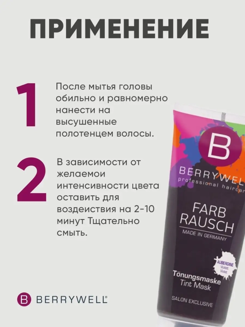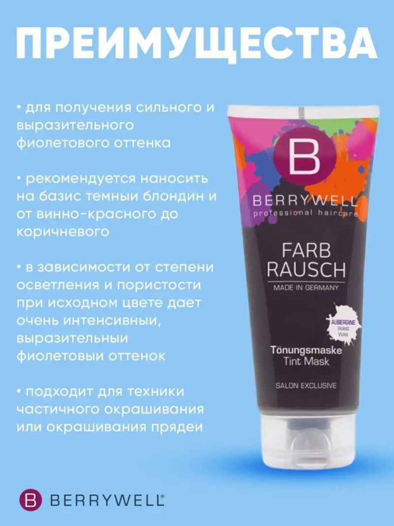 Маска тонирующая TINT MASK AUBERGINE 201 мл (Violet). Используется для получения сильного и выразительного фиолетового оттенка;рекомендуется наносить на базис темный блондин и от винно-красного до коричневого;в зависимости от степени осветления и пористости при исходном цвете дает очень интенсивный, выразительный фиолетовый оттенок;подходит для техники частичного окрашивания или окрашивания прядей.В зависимости от желаемой интенсивности цвета оставить для воздействия на 2-10 минут. Тщательно смыть.Применение: После мытья головы обильно и равномерно нанести на высушенные полотенцем волосы.Совет: Перед применением нейтрализовать медный или золотой оттенок базиса.Примечание: Во избежание загрязнения кожи или одежды в завершение полностью высушите волосы.Пожалуйста, используйте, подходящие перчатки.