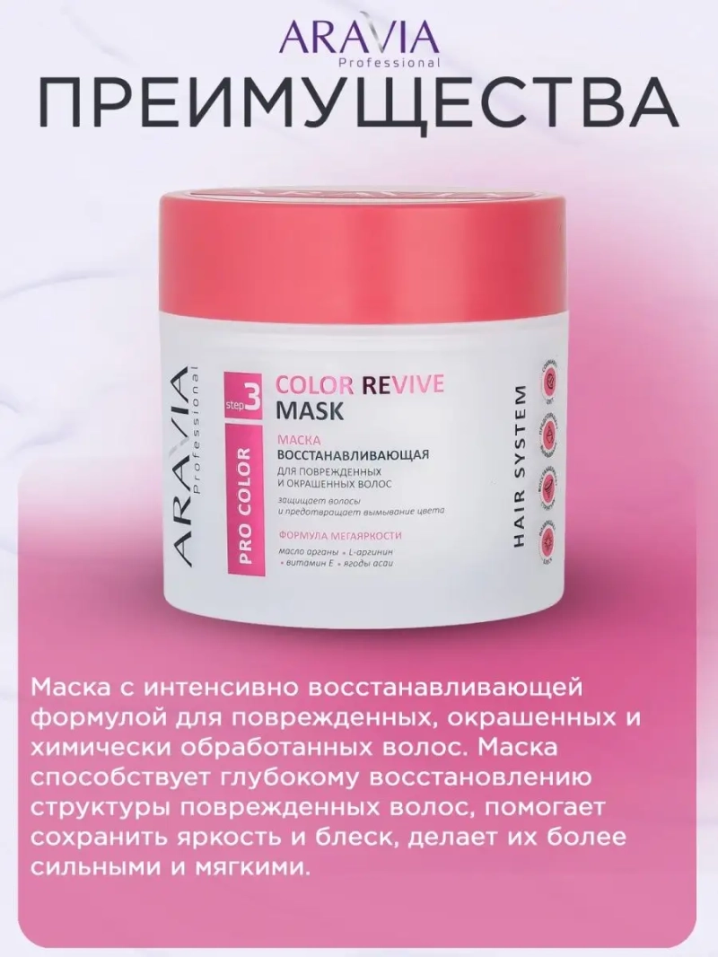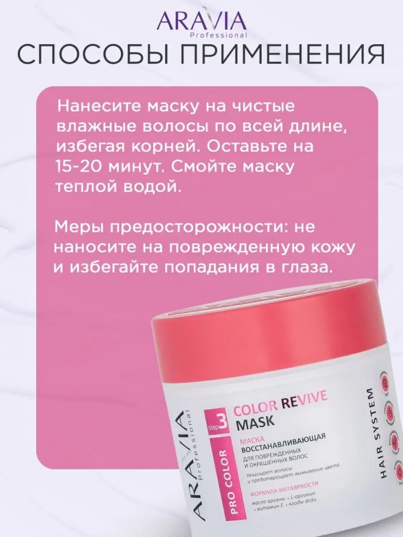 Маска с интенсивно восстанавливающей формулой для поврежденных, окрашенных и химически обработанных волос. Маска способствует глубокому восстановлению структуры поврежденных волос, помогает сохранить яркость и блеск, делает их более сильными и мягкими. Назначение: восстановление поврежденных волос. Рекомендации для использования: подходит для профессионального и домашнего ухода. ДЕЙСТВИЕ: Кондиционирующее