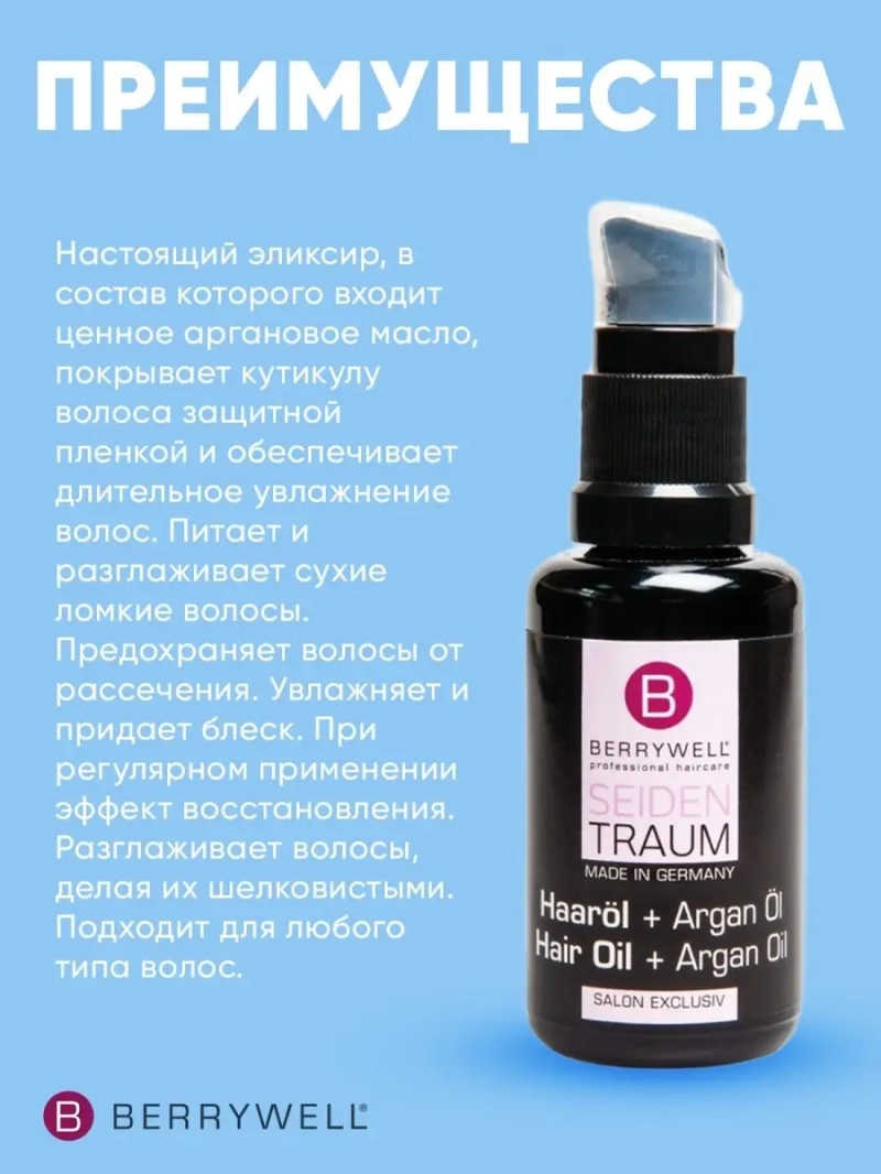 Масло для волос Argan HAIR OIL. Высококачественное масло для волос, питает и разглаживает сухие, ломкие и склонные к сечению волосы, придавая им мягкость и блеск ,а также улучшает их расчёсываемость. Настоящий эликсир, в состав которого входит ценное аргановое масло, покрывает кутикулу волоса защитной пленкой и обеспечивает длительное увлажнение волос. Питает и разглаживает сухие ломкие волосы. Предохраняет волосы от рассечения. Увлажняет и придает блеск. При регулярном применении эффект восстановления. Разглаживает волосы, делая их шелковистыми. Подходит для любого типа волос.