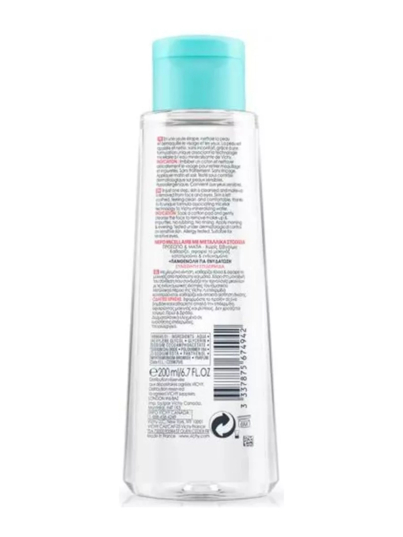 Универсальное средство, которое должно быть в уходе у всех, кто пользуется декоративной косметикой. Деликатная мицеллярная вода с минералами для очищения чувствительной кожи лица глаз и губ PURETE THERMALE от французского бренда аптечной косметики Виши гарантирует мягкое очищение лица, шеи и чувствительной зоны губ и глаз от жира, пыли и загрязнений. Уходовый продукт объединяет в себе минералы и пантенол для получения оптимальной эффективности и переносимости. Особый набор ухаживающих и регенерирующих компонентов органического происхождения направлен на формирование и укрепление защиты сухой и зрелой кожи. Гипоаллергенные формулы представляют собой оптимальное сочетание ингредиентов для сохранения здоровья и красоты кожи во время демакияжа. Термальная вода обеспечивает успокаивающий эффект и придает коже комфорт и мягкость, а также мгновенно успокаивает и уменьшает раздражение. Пантенол оказывает увлажняющее и смягчающее действие. Жидкий очищающий раствор равномерно распределяется по коже без необходимости трения и захватывает и удерживает все частички макияжа и микро - загрязнения. Увлажняющая мицеллярка обеспечивает моментальное очищение и удаление макияжа без повреждения защитного барьера кожи. Новая формула средства оказывает ухаживающее действие и восстанавливает кожу. Мягкая тонизирующая вода удаляет излишки кожного сала и оставляет ощущение свежести. Вулканическая вода Виши уменьшает чувствительность кожи и подготавливает ее к основному уходу. Не вызывает чувство сухости и стянутости. Не оставляет жирной пленки и не закупоривает поры. Имеет минимальный риск возникновения аллергии и раздражений. Не провоцирует появление шелушений, воспалений и прыщей. Не требует смывания. Не содержит мыла, красителей и масел. Без спирта и парабенов. Подходит для носителей контактных линз. Может использоваться для очищения кистей из натурального ворса. Для всех типов мужской и женской кожи, включая сухую, проблемную и склонную к акне, в качестве утреннего и вечернего очищения.
