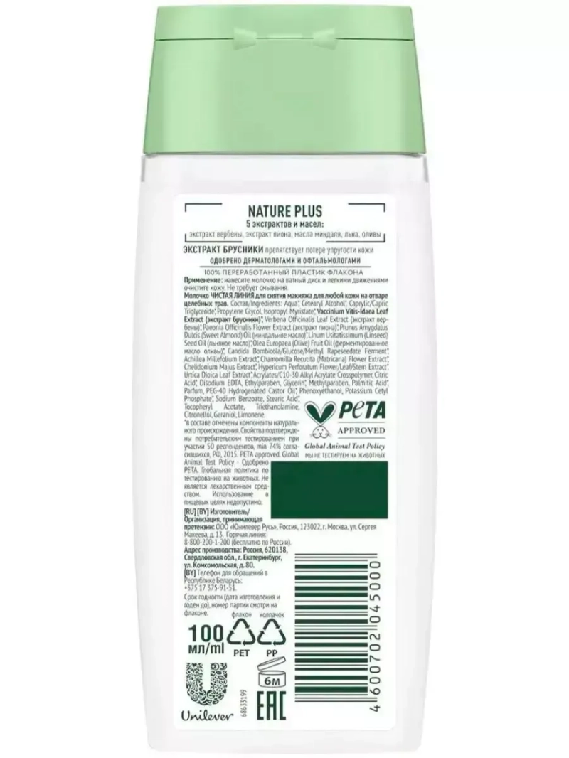 Молочко ЧИСТАЯ ЛИНИЯ для снятия макияжа для любой кожи на отваре целебных трав 100мл. Молочко для снятия макияжа от бренда Чистая Линия подходит для всех типов кожи и действует сразу в нескольких направлениях: деликатно снимает макияж, препятствует потере упругости, увлажняет и питает кожу. В составе продукта 97% компонентов натурального происхождения*! Эссенция NATURE PLUS – это пять экстрактов и масел для ухода за кожей и ее восстановления *компоненты натурального происхождения отмечены в составе на упаковке.
