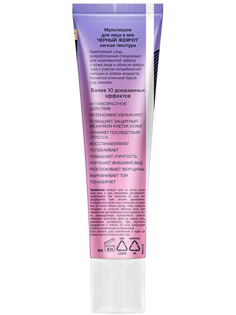 Мультикрем для лица и век Черный Жемчуг – это современный адаптивный уход, разработанный специально для комплексной заботы о коже лица и области вокруг глаз с учетом потребностей женщин в любом возрасте. Является отличной базой под макияж. Легкая текстура прекрасно наносится и быстро впитывается без ощущения пленки. Мультикрем действует комплексно и обладает более 10 доказанными эффектами: увлажнение, питание, восстановление, антивозрастной и другие.