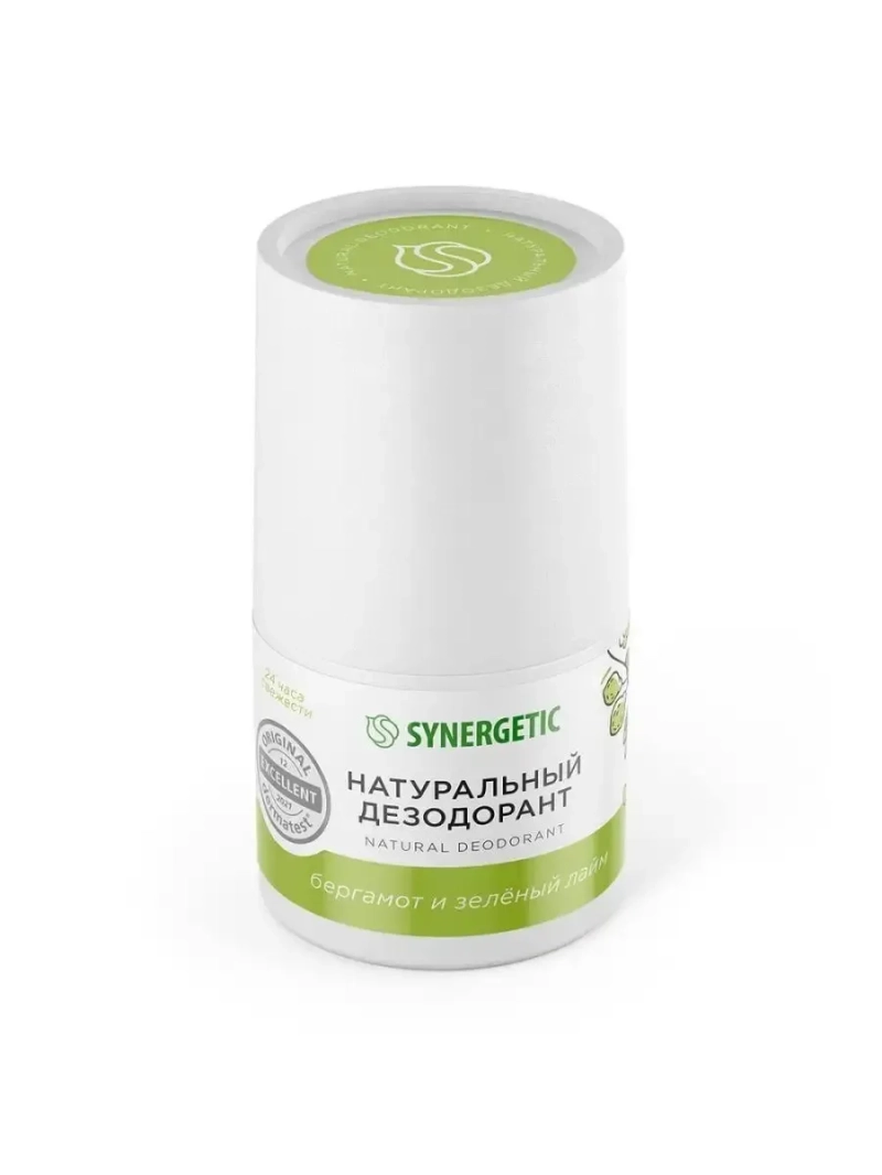 Натуральный дезодорант SYNERGETIC "бергамот - зеленый лайм" с нежным ароматом не содержит солей алюминия, поэтому не блокирует потоотделение и не влияет на естественные обменные процессы. Активные натуральные компоненты триэтил цитрат и трехалоза мягко воздействуют на кожу и обеспечивают надежную защиту, препятствуя размножению микроорганизмов, вызывающих неприятный запах. Сочетание активных компонентов дезодоранта способствует восстановлению оптимального уровня увлажненности и дарит ощущение свежести и комфорта. Экстракты бергамота и лайма обладают тонизирующим действием, интенсивно увлажняют и питают кожу, защищая ее от внешних вредных воздействий. Масло авокадо и бисаболол успокаивают и восстанавливают барьерные функции кожи. Натуральный пребиотик инулин нормализует и поддерживает естественный микробиом кожи. Парфюмерная композиция с эфирными маслами бергамота, апельсина и пихты оставляет на коже нежный аромат. Натуральный дезодорант дерматологически протестирован независимым институтом в Германии. Он не содержит силиконов, парабенов, минеральных масел, красителей, компонентов животного происхождения, не тестируется на животных и сертифицирован британской организацией The Vegan Society. Знак Vegan — мировой стандарт этичной продукции.