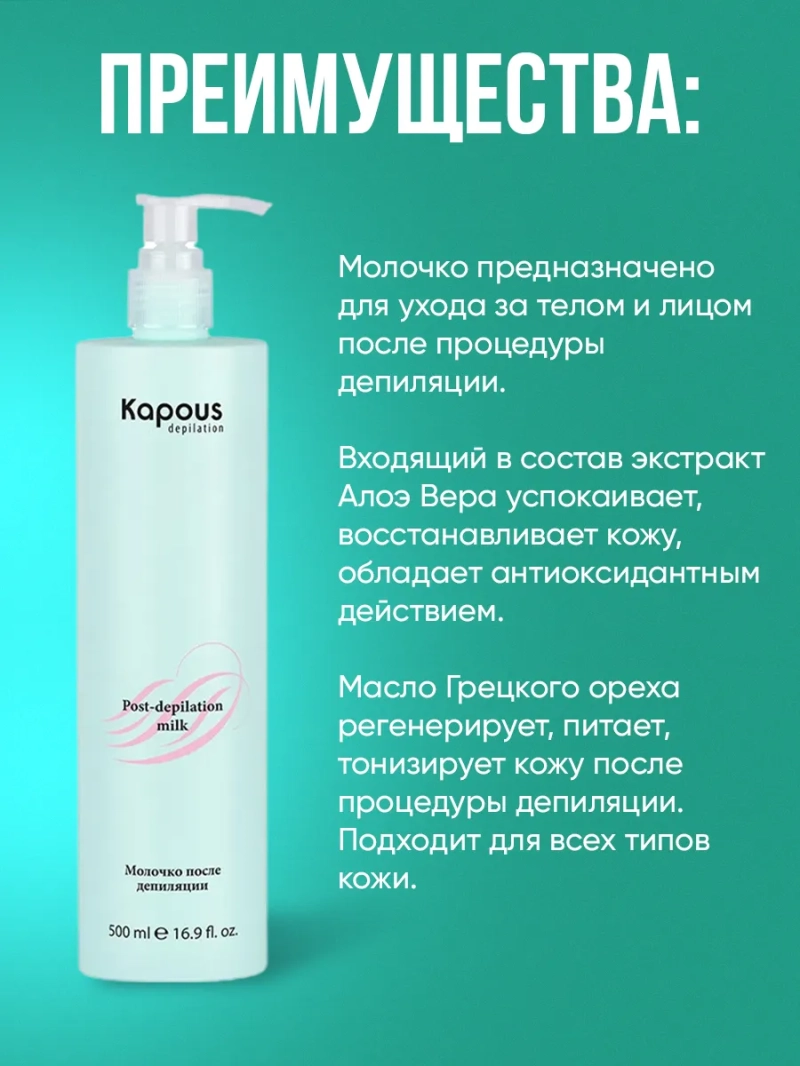 Представляем вам очищающее молочко для депиляции с гвоздичным маслом, которое станет вашим незаменимым помощником в уходе за кожей. Это инновационное средство разработано для того, чтобы обеспечить вам великолепный результат после процедуры депиляции. Очищающее молочко эффективно удаляет остатки воска, не оставляя жирных следов, и при этом ухаживает за вашей кожей, делая её гладкой и ухоженной. Главным активным ингредиентом нашего молочка является гвоздичное масло, которое славится своими увлажняющими и питательными свойствами. Оно насыщает кожу необходимыми элементами, делая её мягкой и бархатистой. В дополнение к этому, мы обогатили формулу продуктом с содержанием Citral, который обладает антисептическим и противовоспалительным действием. Это поможет успокоить и снять раздражение на коже, что особенно важно после депиляции. Очищающее молочко для депиляции с гвоздичным маслом подходит для всех типов кожи. Его натуральные компоненты глубоко проникают в кожу, обеспечивая бережный уход и защиту от воздействия окружающей среды. Нанесение молочка — это легкая и приятная процедура: просто втирайте продукт в кожу легкими массирующими движениями до полного впитывания. Вы сразу почувствуете, как ваша кожа становится гладкой и сияющей, а также более упругой. Приобретая очищающее молочко для депиляции с гвоздичным маслом, вы получаете не только высокое качество и эффективность, но и возможность подарить себе роскошь ухоженной кожи. Мы заботимся о вашем комфорте и стремимся, чтобы вы оставались довольны результатами. Наша многолетняя история успеха подтверждает надежность и эффективность нашего продукта. Не упустите возможность преобразить свою кожу и ощутить все преимущества использования очищающего молочка для депиляции с гвоздичным маслом. Закажите его прямо сейчас и сделайте первый шаг к уверенности в себе и яркости вашего образа!
