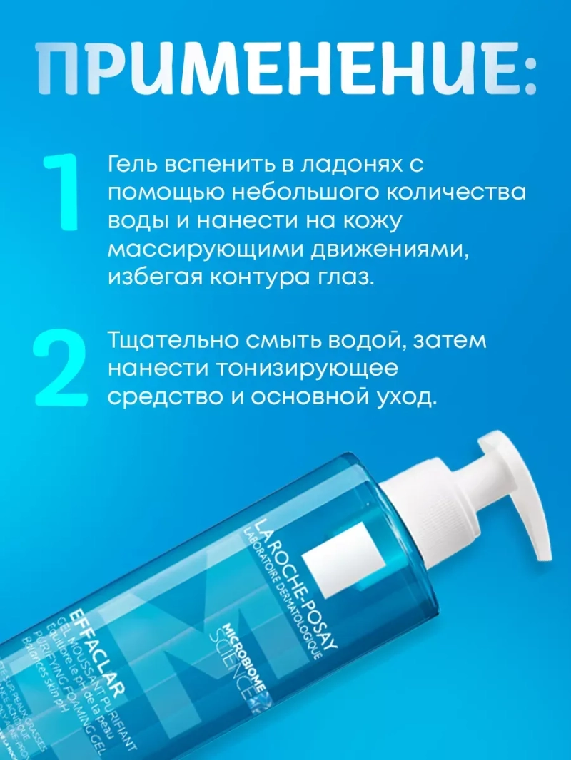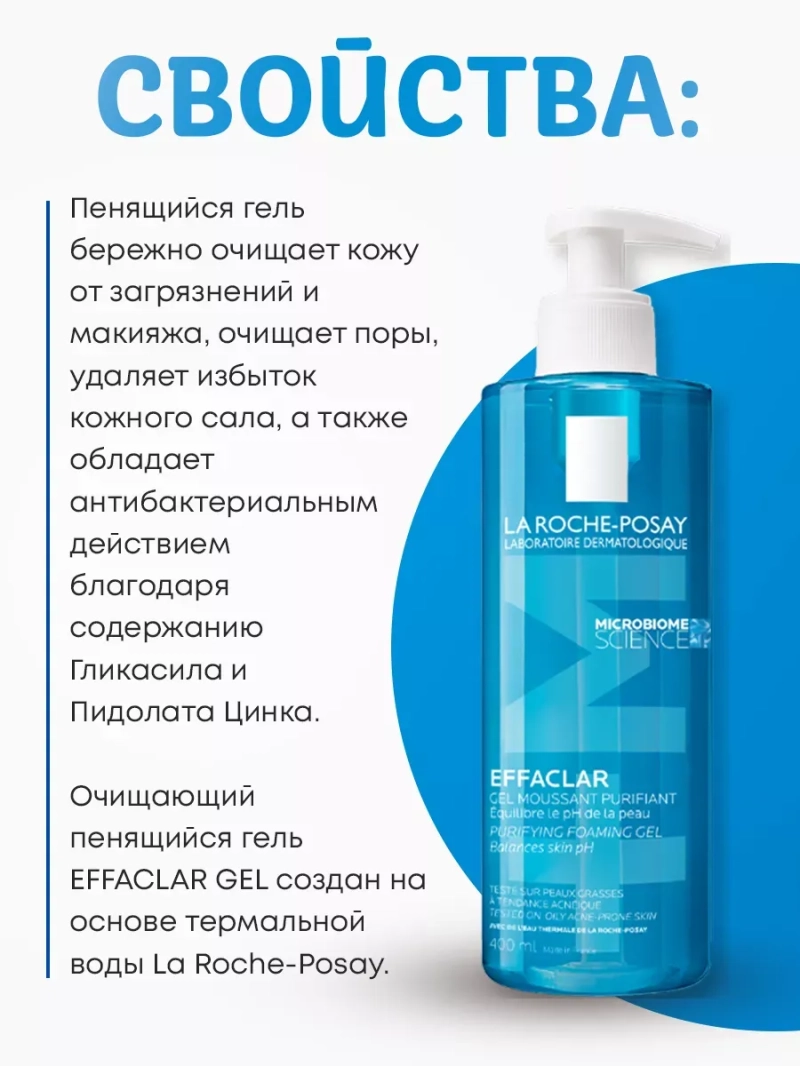 Пенящийся гель бережно очищает кожу от загрязнений и макияжа, очищает поры, удаляет избыток кожного сала, а также обладает антибактериальным действием благодаря содержанию Гликасила и Пидолата Цинка. Очищающий пенящийся гель EFFACLAR GEL создан на основе термальной воды La Roche-Posay. Предназначен для использования для жирной, чувствительной кожи. Переносимость средства доказана на коже, склонной к появлению угревых высыпаний*. *Клиническое исследование проводилось при участии 50 человек с жирной кожей и чувствительной кожей смешанного типа, склонной акне.