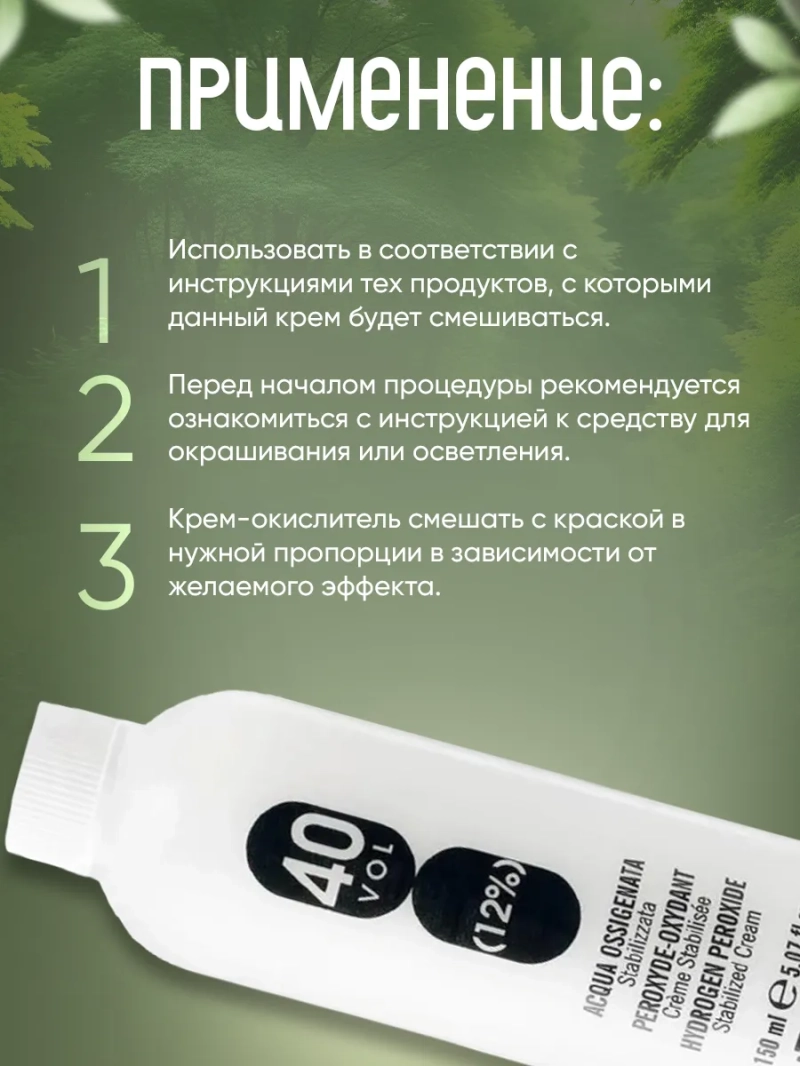 Улучшает нанесение крем-краски. Содержит пероксид водорода. Использовать в соответствии с инструкциями тех продуктов, с которыми данный крем будет смешиваться.