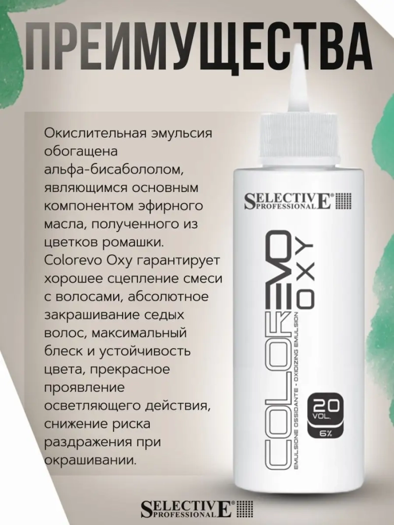 Оксигент "ColorEVO" 6% (20vol) эмульсия окислительная 100мл. Формула Colorevo Oxy разработана для совместного применения с красителем ColorEVO и EvoGlitch для наилучших результатов окрашивания. Окислительная эмульсия обогащена альфа-бисабололом, являющимся основным компонентом эфирного масла, полученного из цветков ромашки. Colorevo Oxy гарантирует хорошее сцепление смеси с волосами, абсолютное закрашивание седых волос, максимальный блеск и устойчивость цвета, прекрасное проявление осветляющего действия, снижение риска раздражения при окрашивании. Применение: Перед использованием внимательно ознакомьтесь с инструкцией. Смешивать краску и оксигент необходимо только в неметаллической посуде.