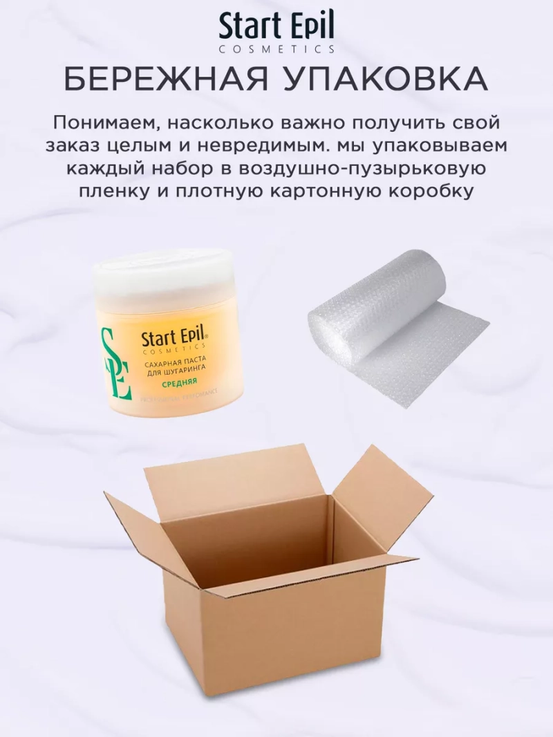 ПАСТА ДЛЯ ШУГАРИНГА «СРЕДНЯЯ», 400 Г. Сахарная паста для шугаринга предназначена для мануальной техники депиляции, рабочая температура составляет 37-40°C. Сахарная паста средней консистенции отлично подойдет для работы в теплом помещении при прохладных руках мастера и, если вы работаете в прохладном помещении при теплых руках. Идеально подходит для удаления волос средней жесткости. Назначение: удаление нежелательных волос. Рекомендации для использования: для профессионального использования. СПОСОБ ПРИМЕНЕНИЯ: Перед разогревом снять фольгу. Очистить кожу с помощью лосьона или тоника Start Epil. Нанести на зону депиляции небольшое количество талька без отдушек и добавок Start Epil. Взять комочек сахарной пасты размером с грецкий орех. Равномерно нанести на зону депиляции против роста волос. Зафиксировать кожу рукой там, откуда начнется срыв. Произвести срыв резким движением по росту волос, параллельно поверхности кожи. Остатки сахарной пасты удалить термальной водой Start Epil и салфеткой.Завершить процедуру средствами для ухода за кожей: молочком увлажняющим или сливками восстанавливающими Start Epil. Меры предосторожности: не наносите на поврежденную кожу и избегайте попадания в глаза. При попадании в глаза тщательно промойте водой. Перед применением тестируйте на небольшом участке кожи.