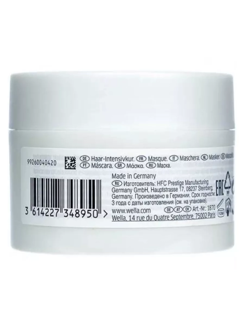Питательная маска для вьющихся и кудрявых волос Nutricurls 150 мл от Wella Professionals – средство для ухода за поврежденными волосами. Создана на основе натуральных компонентов, обладает инновационным составом, способствует восстановлению и укреплению сухих волос. Основой маски для ослабленных волос служит комплекс Nourish-In с экстрактом ростков пшеницы и маслом жожоба, которое питает и увлажняет непослушные волосы изнутри, проникая вглубь структуры. Витамин Е, минералы и жирные кислоты, которые устраняют сухость и ломкость волос, помогают сохранить форму кудрявых и вьющихся волос, оказывают антифриз-эффект, интенсивно увлажняют волосы.Она невероятно питательная и обеспечивает максимальное питание и восстановление даже самых окрашенных и осветленных волос. Маска для волос обладает не только превосходным увлажняющим эффектом, но и способна укрепить тонкие и ломкие волосы блондинок, брюнеток, шатенок. Косметическая формула уходовой маски позволяет достичь идеального баланса между восстановлением и уходом, обеспечивая максимальное восстановление после окрашивания и осветления. Профессиональная маска не утяжеляет волосы и не создаёт липкой пленки на поверхности, благодаря легкой текстуре. Она идеально подойдёт для всех типов волос: сохранит цвет окрашенным волосам, сделает вьющиеся волосы послушными, разгладит прямые и уберет пушистость. Кондиционер для создания послушных и эластичных локонов обеспечивает вьющимся и кудрявым волосам оптимальный уровень питания, делая их упругими и объемными. Защитит от негативных факторов – горячего фена, утюжков, жесткой воды и солнечных лучей. После использования маски, непослушные волосы не путаются и легко расчесываются. Нанесите на чистые влажные волосы на 5 минут, затем тщательно смойте водой. Восстанавливающая маска для волос с эффектом бальзама проникает глубоко в волосяные стержни и защищает их снаружи. Под воздействием увлажняющей маски для волос, волосы приобретают салонный и естественный блеск, становятся шелковистыми.