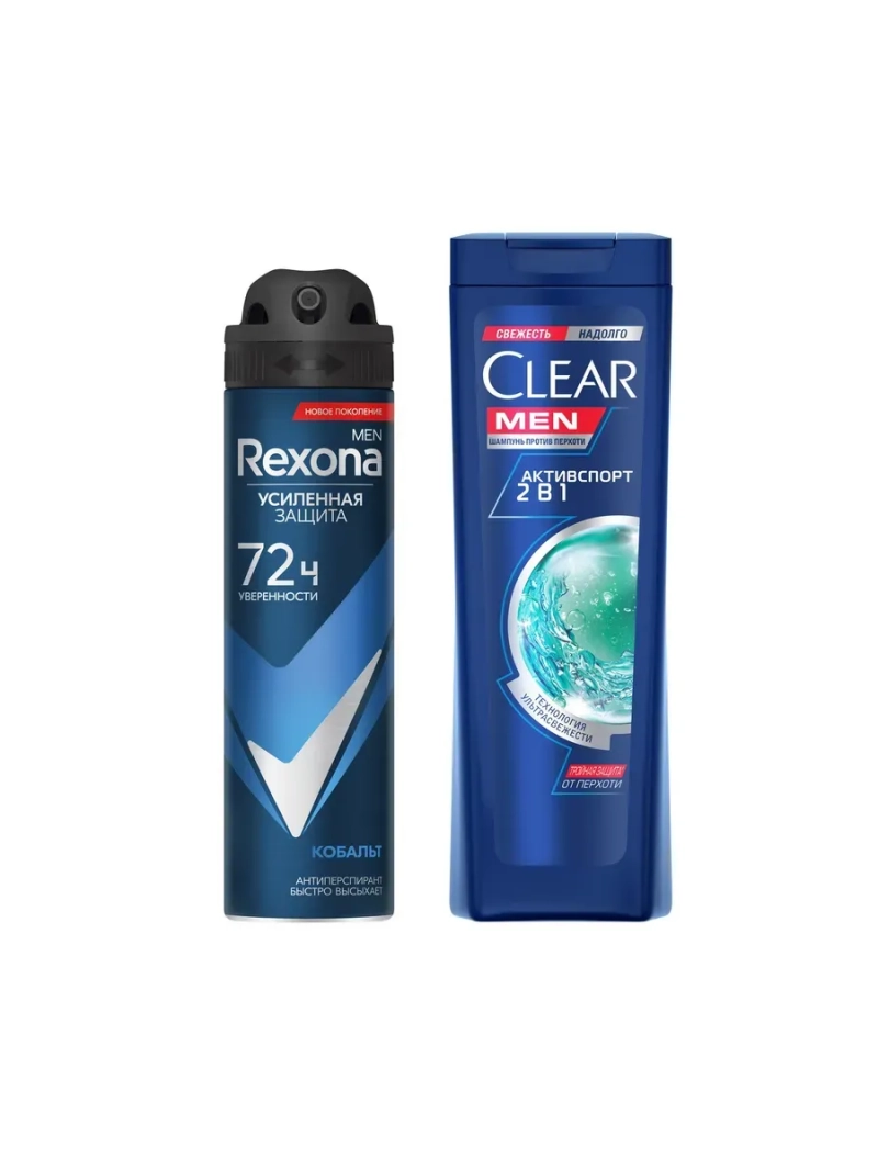 Полное наименование: REXONA MEN + CLEAR Подарочный набор АБСОЛЮТНАЯ УВЕРЕННОСТЬ (Антиперспирант-аэрозоль Rexona Men Кобальт 150мл+Шампунь и бальзам-ополаскиватель Clear Vita ABE 200мл). Производитель: Unilever Россия. Набор Абсолютная уверенность Rexona Men и Clear – то, что нужно для ежедневных побед. Шампунь и бальзам-ополаскиватель Clear Vita ABE против перхоти для мужчин 2 в 1 Активспорт борется с перхотью, оставляя волосы чистыми и ухоженными. Антиперспирант-аэрозоль Rexona Men Кобальт эффективен от пота и запаха до 72 часов* благодаря технологии Motionsense. Она активируется при движении, сохраняет свежесть и комфорт на весь день. * хот рум тест, Unilever R&D, 2019. Клинически подтверждено.