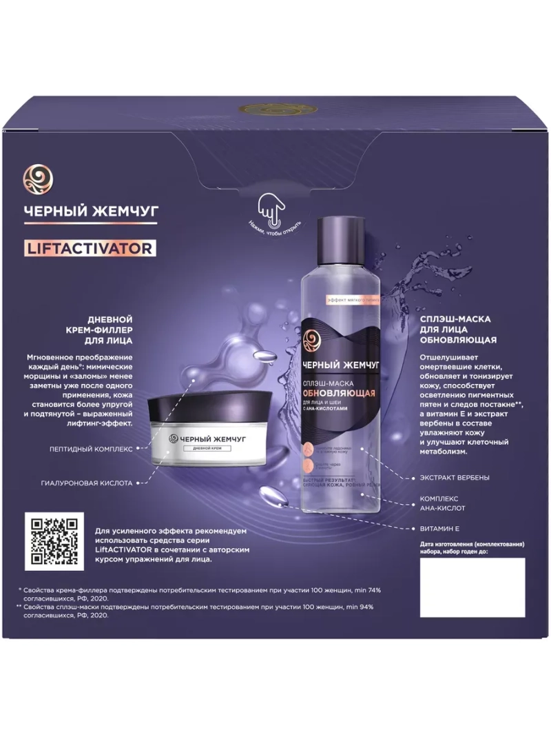 Дарите красоту и молодость вместе с набором LIFTACTIVATOR от бренда Черный Жемчуг! Обновляющая сплэш-маска эффективно отшелушивает ороговевшие клетки, обновляет и тонизирует кожу, способствует осветлению пигментных пятен и следов постакне, а витамин Е и экстракт вербены в составе увлажняют кожу и улучшают клеточный метаболизм. Дневной крем-филлер преображает кожу, делает ее упругой, выравнивает рельеф и сокращает мимические морщинки.