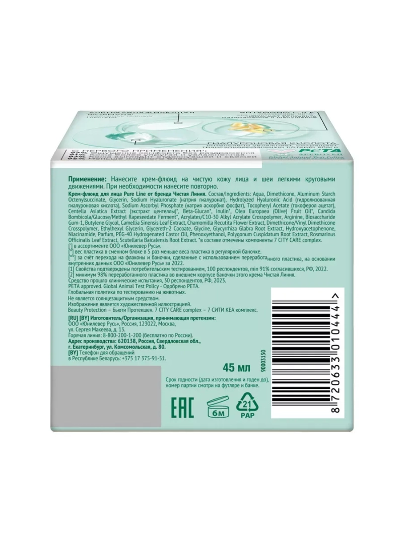 Гипоаллергенный крем-флюид, разработанный с учетом всех потребностей жирной и комбинированной кожи, содержит гиалурон, витамины С и Е, 7 CITY CARE complex с активом центеллы и растительными пребиотиками. Невесомая тающая текстура легко впитывается и не оставляет жирной пленки. Результат: ощущение комфорта без раздражения, кожа более упругая и увлажненная, она выглядит отдохнувшей и свежей, меньше жирного блеска.