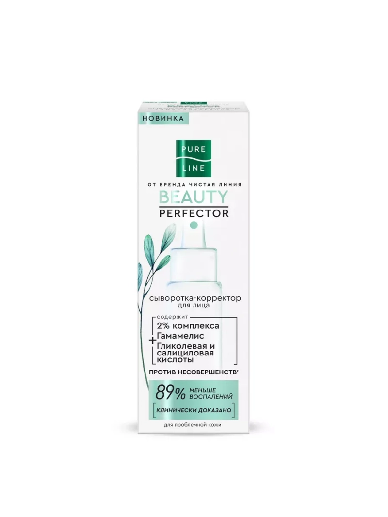 Попробуйте уход для проблемной кожи – сыворотку-корректор Pure Line Beauty Perfector от бренда Чистая Линия. Ее формула содержит 2% комплекса из гамамелиса, гликолевой и салициловой кислот. Успокаивает и восстанавливает, оказывает себорегулирующий эффект. Клинически доказано: 89% – меньше воспалений*. *Свойства подтверждены клиническими испытаниями и анкетированием 28 пробантов, РФ, 2023. Воспаления - прыщи, вызванные избыточной активностью сальных желез. Не является лекарственным средством.