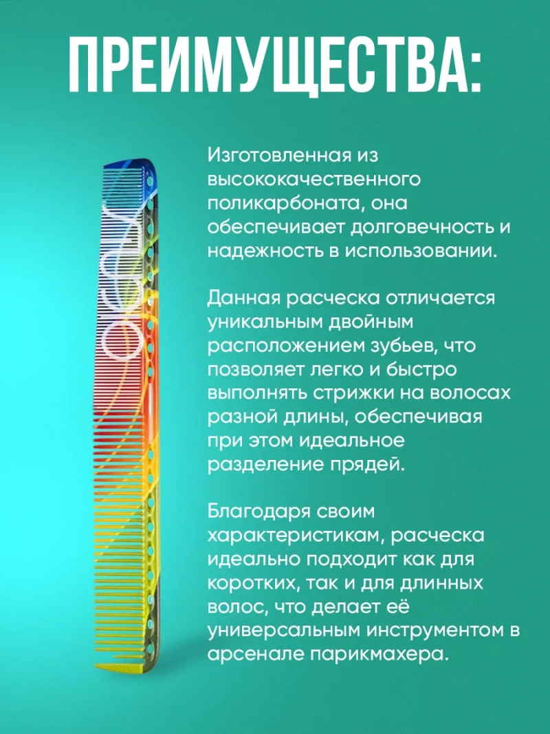 Расческа парикмахерская 214*28 мм — это идеальный инструмент для профессионалов и любителей, стремящихся достичь идеальной стрижки. Изготовленная из 100% поликарбоната, эта расчёска обеспечивает невероятную лёгкость и удобство в использовании. Благодаря двойному расположению зубьев, она позволяет выполнять стрижки особой точности, что делает её незаменимым аксессуаром в арсенале любого парикмахера. Ровная основа расчески способствует равномерному распределению волос, что значительно упрощает процесс стрижки. Парикмахерская расчёска размером 214*28 мм идеально подходит как для коротких, так и для длинных волос. Она легко справляется с различными техниками стрижки, включая филировку и текстурирование. Лёгкий и прочный поликарбонат делает её устойчивой к механическим повреждениям, а также защищает от воздействия химических средств. Эта расческа станет отличным выбором для салонов красоты и домашних мастеров. Она не только функциональна, но и стильно выглядит, что добавляет шарма в процесс стрижки. За счёт своих качеств, она прекрасно подходит для работы с различными типами волос, включая густые и кудрявые. Расческа парикмахерская 214*28 мм — это не просто инструмент, а надежный помощник в создании идеального образа. Обеспечьте себе комфорт и точность в работе с этой замечательной расчёской. Профессиональные парикмахеры оценят её по достоинству, а начинающие мастера смогут быстро освоить технику стрижки с её помощью. Не упустите возможность приобрести эту качественную расчёску и ощутить все преимущества работы с ней.