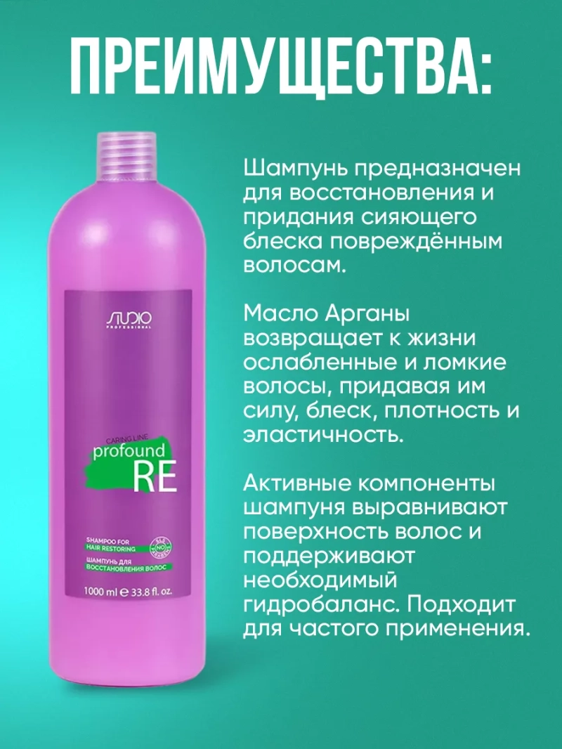 Шампунь для восстановления волос Caring Line Profound Re предназначен для восстановления и сияющего блеска поврежденных волос, не содержит натрия лауреат сульфатов и парабенов. Бережно очищает волосы, обеспечивая максимальный уход и восстановление поврежденной структуры. Благодаря входящим в состав маслу орехов арганы и фруктовым кислотам интенсивно питает, восстанавливает и защищает поврежденные... Шампунь для восстановления волос Caring Line Profound Re предназначен для восстановления и сияющего блеска поврежденных волос, не содержит натрия лауреат сульфатов и парабенов. Бережно очищает волосы, обеспечивая максимальный уход и восстановление поврежденной структуры. Благодаря входящим в состав маслу орехов арганы и фруктовым кислотам интенсивно питает, восстанавливает и защищает поврежденные волосы, насыщает их активными компонентами, придавая жизненную силу и тонус. Шампунь подготавливает волосы к процедуре более интенсивного восстановления - рекомендуется использовать один раз в неделю в комплексе с бальзамом для восстановления поврежденных волос. Способ применения: Нанести небольшое количество шампуня на влажные волосы. Вспенить массирующими движениями, распределяя по всей длине волос в течение 2-4 минут, смыть теплой водой. При необходимости процедуру повторить. После мытья нанести на волосы бальзам для восстановления волос Profound Re.