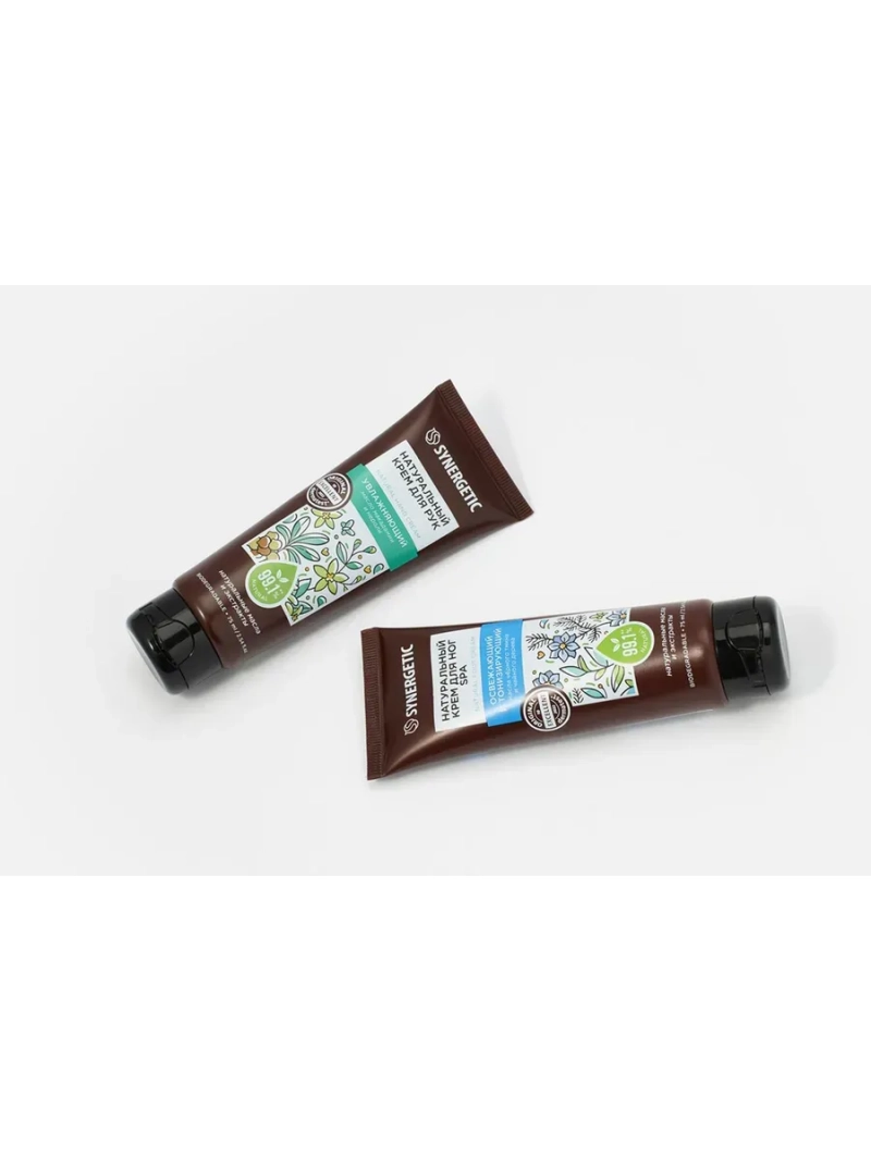 SYNERGETIC предлагает подарочный набор "Освежающий и тонизирующий" для ног, включающий крем для ног объемом 75 мл и увлажняющий крем для рук объемом 75 мл.