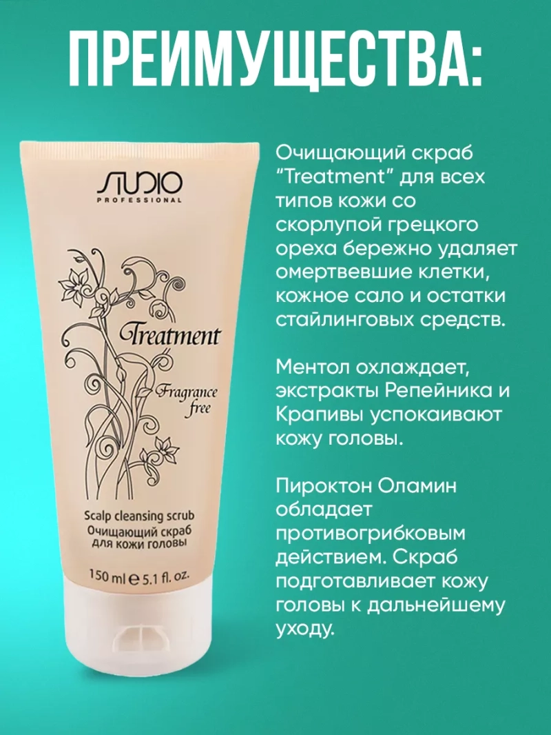Очищающий скраб "Treatment" для кожи головы обладает хорошими отшелушивающими свойствами. Благодаря экстрактам лопуха и крапивы скраб добивается максимального очищения кожи головы от загрязнений, оптимального воздействия на кожу и волосяные луковицы, что подготавливает ее к курсу профилактических мероприятий для решения имеющихся проблем. Мощное противогрибковое средство Peroctone Olamine оказывает ациостатическое воздействие, направленно действует против образования перхоти, благодаря чему восстанавливается сбалансированная жизнедеятельность клеток эпидермиса кожи и укрепление естественных защитных функций. Экстракты лечебных трав оказывают антисептическое, успокаивающее, противовоспалительное действие, придавая эффект свежести. Серия "Fragrance free" не имеет парфюмированных добавок. Способ применения: равномерно нанести скраб на кожу головы по проборам. Деликатно промассировать и оставить на 3-6 минут, затем смыть теплой водой. Вымыть голову одним из шампуней серии "Treatment", в зависимости от имеющейся проблемы. Использовать не больше двух раз в месяц. Состав: Aqua (Water), Alcohol Denat, Glycerin, PEG-7 Glyceryl Cocoate, Propylene Glycol, Sodium Hyrdoxide, Menthol, Carbomer, Junglans Regia Shell Powder (Walnut (Juglans Regia) Shell Powder), Styrene/Pvp Copolymer, Peroctone Olamine, Arctium Majus Extract (Arctium Majus Root Extract), Urtica Dioica Extract (Urtica Dioica (Nettle) Extract), Diazolidinyl Urea, Limonene, Linalool, Methylparaben, Hexyl Cinnamal, Propylparaben