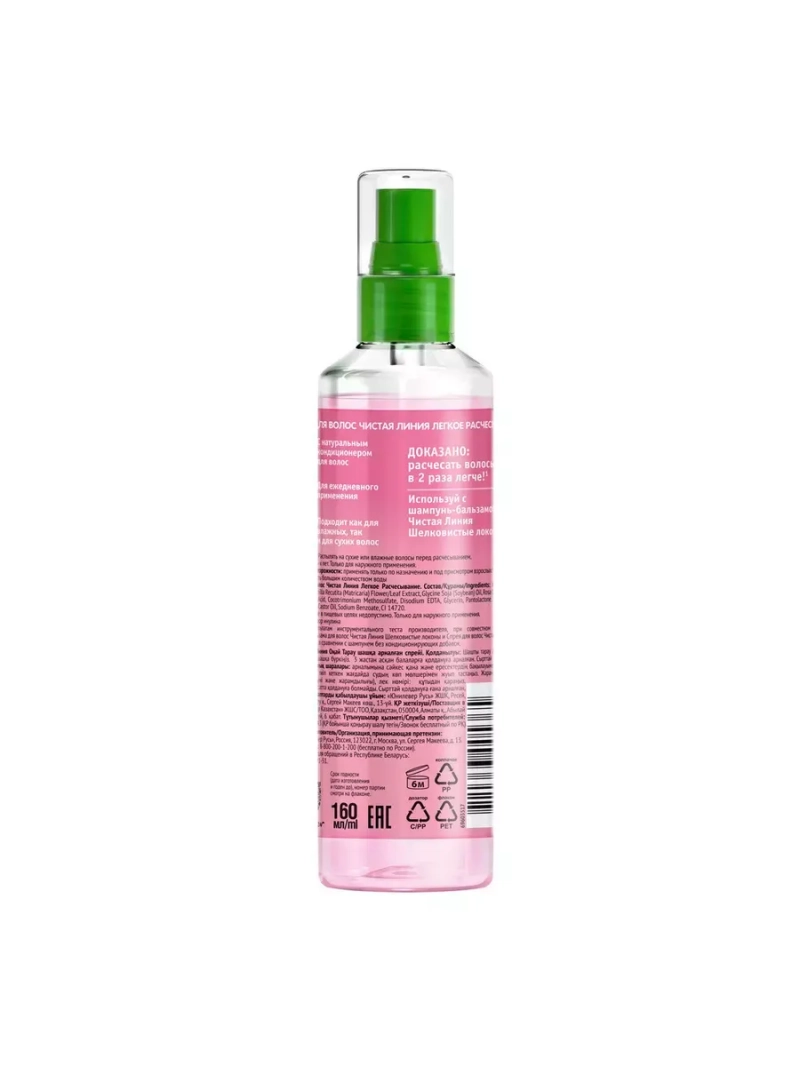 Спрей Легкое расчесывание с натуральной основой и природным кондиционером для волос рекомендован для детей от 3-х лет. В составе спрея для волос ромашка, роза и пантенол, которые ухаживают за волосами и делают расчесывание легче! Подходит для ежедневного применения как на влажных, так и на сухих волосах. Водный раствор инулина.