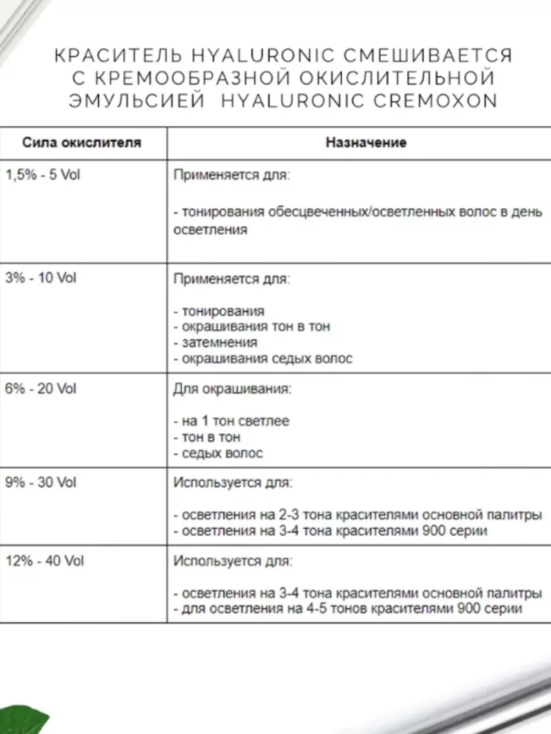 Новая революционная формула краски для волос с аммиаком Hyaluronic Acid - это идеальное окрашивание или тонирование, а также восстановление волос в одной процедуре. В состав красителя включает низкомолекулярную гиалуроновую кислоту и инновационный ухаживающий комплекс, которые обеспечивают максимальное увлажнение, сохранение и восстановление структуры волос при окрашивании. Эта тонирующая краска идеально подходит для тех, кто хочет безопасно изменить цвет волос или освежить естественный оттенок, не прибегая к агрессивным химическим составам. Краска для волос капос содержит низкий процент содержания аммиака. Перманентный, аммиачный, стойкий краситель, бережно окрашивает, сохраняет здоровье, увлажнение и естественный блеск волос. Кремовая текстура красителя для волос обеспечивает легкое нанесение и удобство в работе. Обладает высокой стойкостью. Безопасный состав, щадящий уход без вреда для волос и кожи головы. Эксклюзивный коктейль микромолекул пигментов образуют плотную сетку, которая позволяет достичь идеального покрытия волос, стойкости цвета, шелковистости и бриллиантового блеска после окрашивания. Широкая палитра профессиональной краски для волос имеет много оттенков и позволяет выбрать нужный оттенок для всех типов волос: тонких, окрашенных, светлых, седых, тусклых, блонд, ломких, сухих, кудрявых, для блондинок. Краска для волос Капус обогащена натуральными витаминами, имеет увлажняющие и ухаживающие компоненты, которые обеспечивают для волос максимальную стойкость цвета и блеска, защиту от УФ-лучей и исключительное качество волос. Специально разработанные микстона перманентной краски для волос позволяют получать любые по насыщенности и интенсивности яркие оттенки. Простой в использовании пигмент - дающий глубокий цвет и дополнительно ухаживает за вашими локонами. Краситель для волос применяется с оксидантом капус (1 часть крем-краски и 1,5 части крем-оксида) 1.5% или 3% 4%, 6%, 9%, 12% и 1,9%. Возможно к применению только профессионалами в салонах красоты.