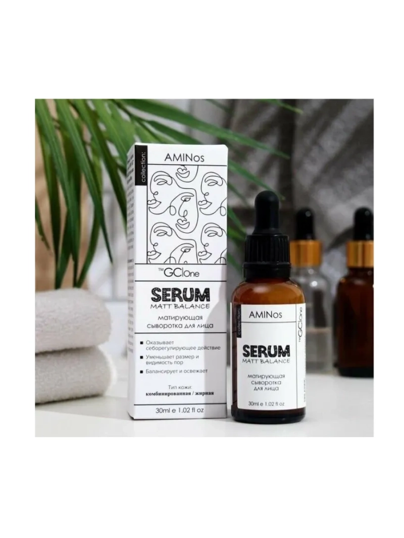 Матирующая сыворотка для лица предназначена для всех типов кожи и помогает бороться с различными проблемами: от прыщей на лице до профилактики выработки себума. Если ты страдаешь от несовершенств кожи, то эта сыворотка для тебя. От проблемных участков до восстановления гидролипидной мантии - она решает все! Ежедневная матирующая сыворотка для лица — эффективное средство для борьбы с прыщами, акне и жирным блеском. Эта уникальная формула разработана специально для проблемной кожи и обеспечивает глубокое увлажнение благодаря пантенолу, матирование и регуляцию выработки себума. Сыворотка от AMINos содержит активные компоненты, которые помогают устранить воспаления, сужают поры, нормализуют работу сальных желёз и предотвращают появление новых прыщей. Благодаря лёгкой текстуре, средство быстро впитывается, не оставляя липкости и жирности. Матирующая Сыворотка оказывает себорегулирующее действие, уменьшает размер и видимость пор. Способствует очищению и оказывает балансирующее действие улучшает и разглаживает поверхность кожи. Создает ощущение комфорта и защищает кожу от внешних загрязнений, делая ее гладкой и шелковистой. Отлично подойдет в подарок. А также можно собрать (beauti) бьюти набор, чтобы комплексно ухаживать за кожей лица. Не упустите возможность приобрести матирующую сыворотку для лица и подарите своей коже здоровый и ухоженный вид без жирного блеска и прыщей. Серум стимулирует синтез коллагена и контролирует выработку кожного сала. Нежная текстура не оставляет после себя ощущения липкости. Включите сыворотку для лица в ежедневный уход за лицом, чтобы подарить себе профессиональный уход дома. Способ применения: нанесите несколько капель на чистую кожу, равномерно распределите.