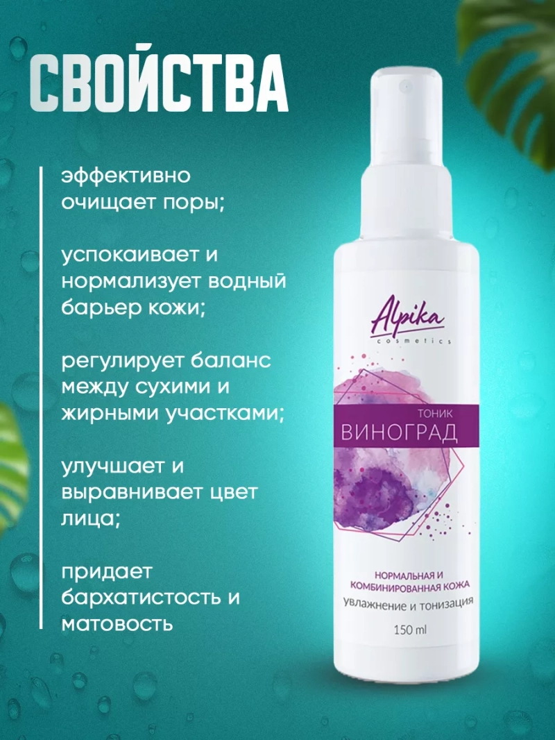 Хотите, чтобы Ваша кожа всегда выглядела свежей, увлажненной и сияющей? Тогда профессиональный тоник для кожи лица Виноград от бренда Alpika - ваш незаменимый помощник!