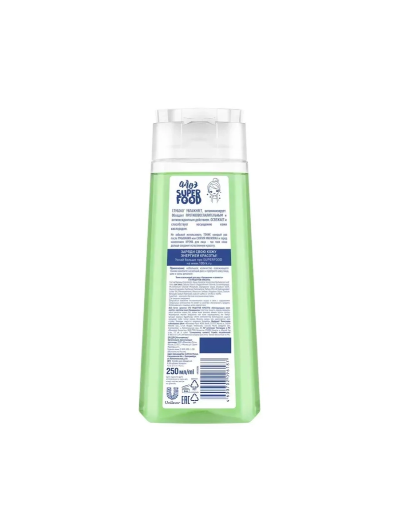 Тоник для лица Увлажнение от косметического бренда Сто Рецептов Красоты содержит в своем составе целых 20% сока алоэ, который проникает в кожу в 4 раза быстрее воды и способствует глубокому увлажнению. Активная ежедневная подготовка к дальнейшему уходу за кожей лица! Сок алоэ вера способствует очищению кожи - препятствует закупорке пор на коже лица и придает ее поверхности здоровый матовый блеск, стимулирует регенерацию тканей за счет восстановления обмена веществ, ускорения циркуляции крови, увлажнения, размягчения и отшелушиванию мертвых ороговевших клеток кожи. Так же сок помогает при воспалениях, раздражения кожи, угревой сыпи, препятствует образованию рубцов, покрывает кожу защитным слоем, тем самым препятствуя росту болезнетворных бактерий и грибковых инфекций. Розовая вода используется в косметологии для очищения лица, придаёт коже упругость, свежесть и эластичность, способствует увлажнению, устраняет сухость, шелушение, ощущение стянутости, раздражения, воспаления, является природным антисептиком, имеет антиаллергическое действие, что позволяет использовать его компонентом средств ежедневного ухода за кожей; компрессы из розовой воды способствуют рассасыванию мешков под глазами, устранению тёмных кругов и снимают напряжение уставших глаз.